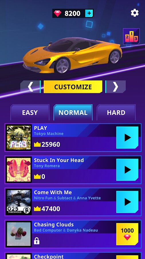 Постарайтесь собрать максимум наград и игровой валюты, чтобы разблокировать новые автомобили и вскоре открыть свой собственный автопарк. Пробуйте себя в новых мелодиях и новых режимах сложности. Продвигайтесь от новичка к профессионалу, щелкая крутые песни как орешки!