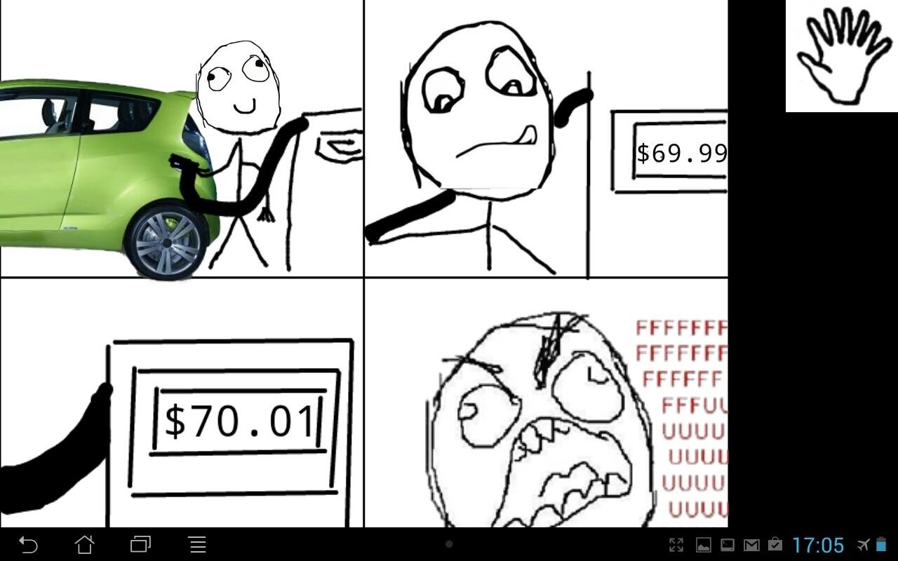 Программа для создания Rage-комиксов. Описание: Описание с Маркета. Rage Comic Maker для Android представляет собой приложение, которое позволяет пользователям легко создавать комиксы ярости на своих устройствах Android. Теперь с еще большей ненависти лиц и улучшенную стабильность! ** Некоторые из ключевых особенностей: Гибкая количество панелей (1-20) Панорамирования и масштабирования комические холст, а также элементов изображения Отмена и повтор вашего движения Использование внешних блоков для любого количеств пользовательских пакетов изображений Сохранение и поделиться своими творениями Рисование прямых линий или свободной кривых с различными размерами кисти и красок