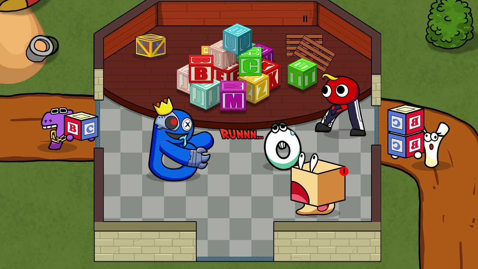 - ✅Нажми на кнопку «ящик», чтобы спрятаться от монстров алфавита