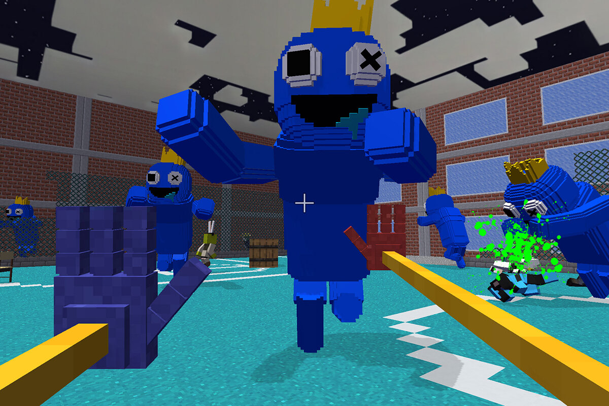 - Беги быстро и круши, если ты Rainbow Friend, Wugy, Bear Fedy, Mommy Long Legs, Yellow Baby и т. д.