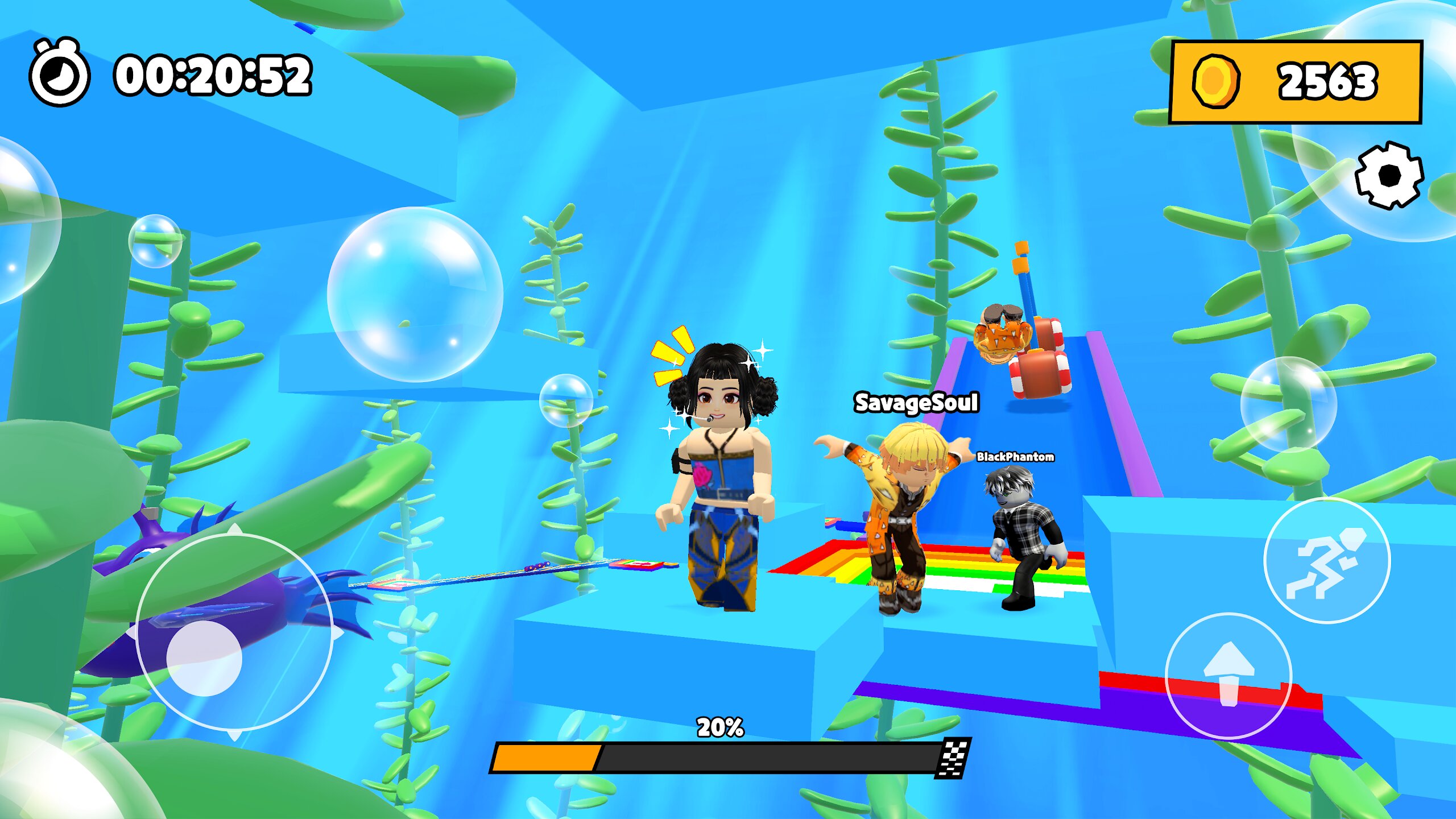 Rainbow Race: Obby Dash — это динамичная 3D-игра в жанре «обби», в которой вы мчитесь по ярким трассам цвета радуги.