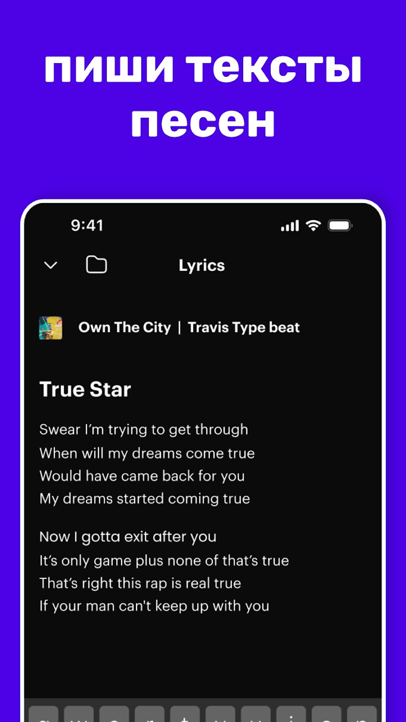 Приложение имеет удобную студию, где вы можете записывать куплеты с помощью встроенного блокнота. Вы можете улучшить свои записи с помощью профессиональных вокальных эффектов, таких как Auto-Tune, radio, chipmunk и Cave, чтобы добиться уникального звучания. Отличительной особенностью является инструмент для совместной работы, позволяющий приглашать друзей добавлять куплеты к вашему треку удаленно. Для вдохновения используйте Rap Name Generator, чтобы создать свой артистический образ и принять участие в эксклюзивных конкурсах, которые оценивают A&R-менеджеры индустрии, чтобы получить признание.