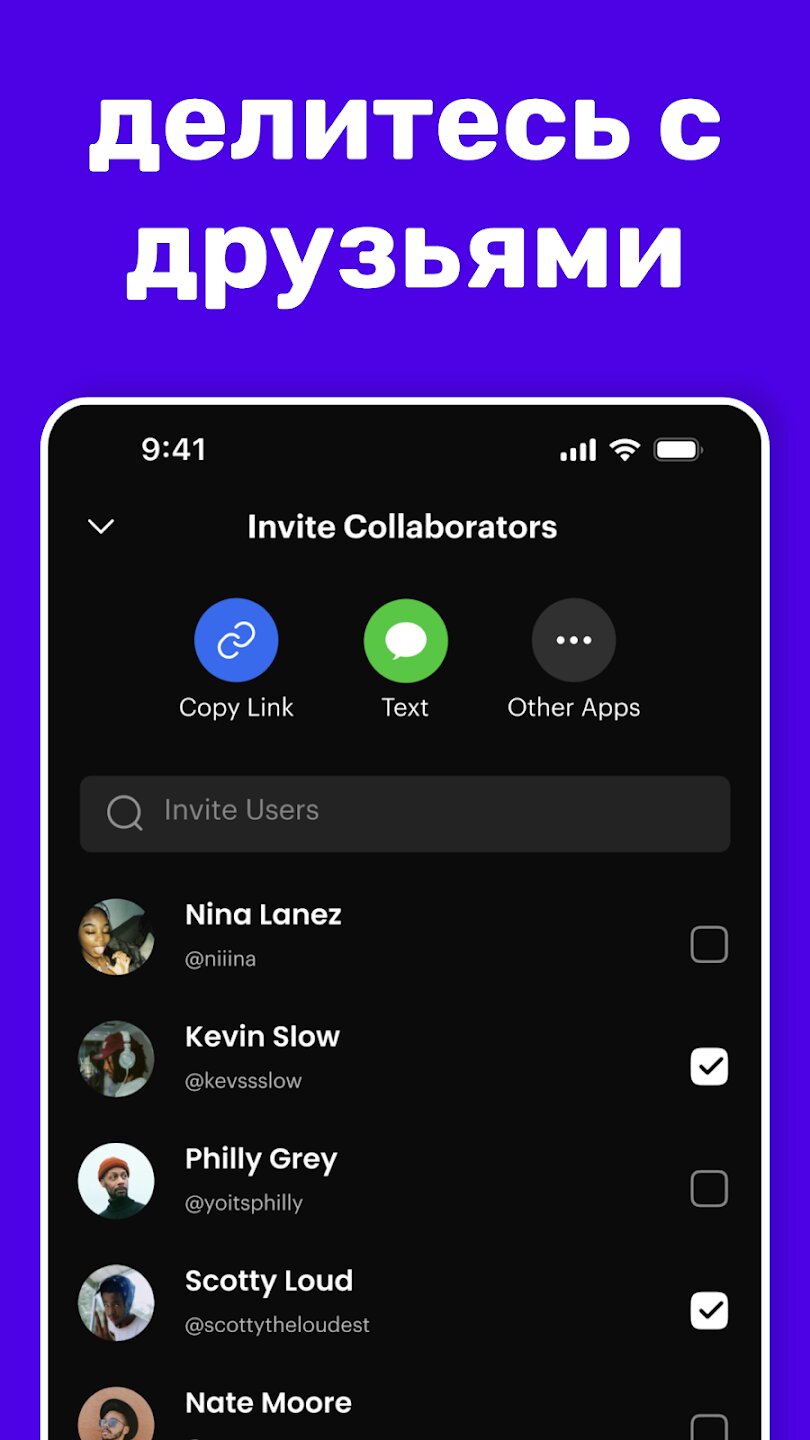 - Инструменты для совместной работы, позволяющие приглашать друзей для участия в треках.
