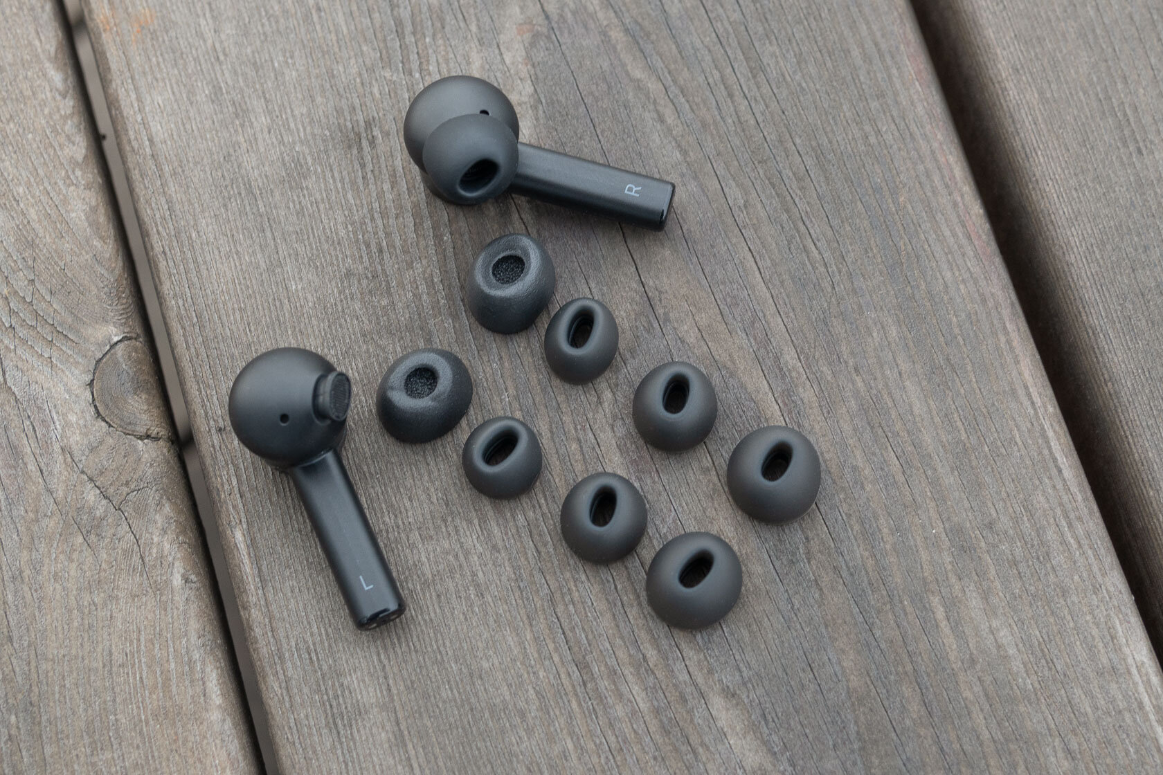 В комплекте, помимо 4 пар силиконовых амбушюров, лежит пара пенных насадок Comply Black среднего размера. Они работают по принципу берушей, точно принимает форму ушного канала и прекрасно изолируют от окружающего шума.