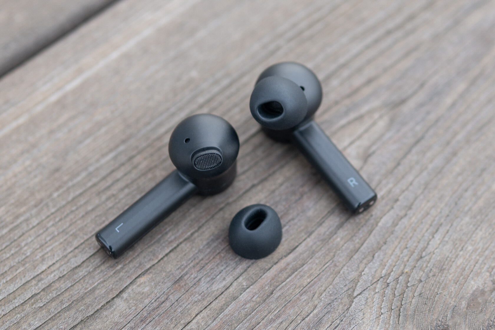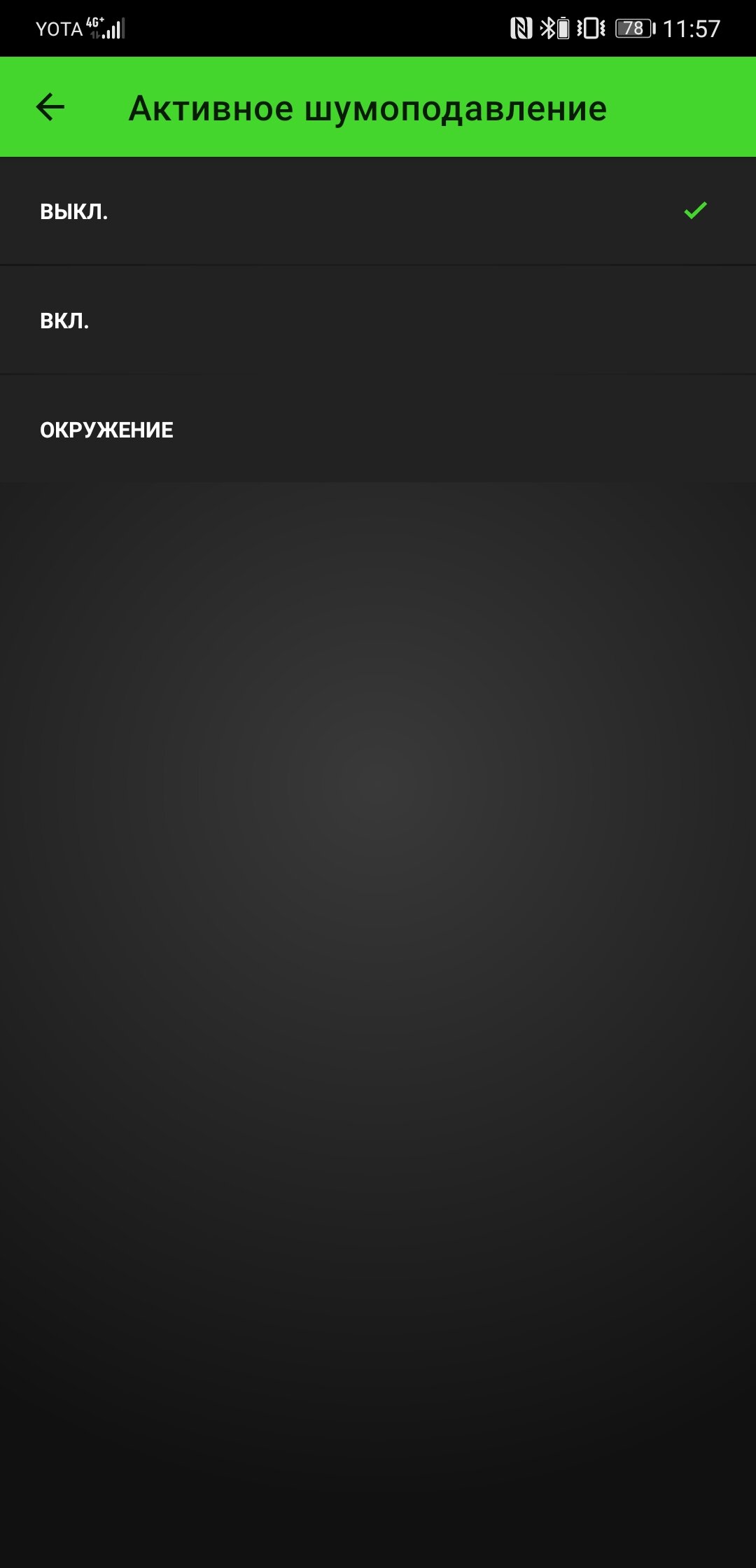 Ещё одно нововведение продвинутой версии — система активного шумоподавления (ANC). В данном случае используется базовый вариант без регулировки интенсивности на базе одного внешнего и одного внутреннего микрофонов. Шумоподавление выручает в особо шумных ситуациях: на улице или в метро. В тихой комнате лучше отключить ANC, так как от него идёт тихий монотонный шум.