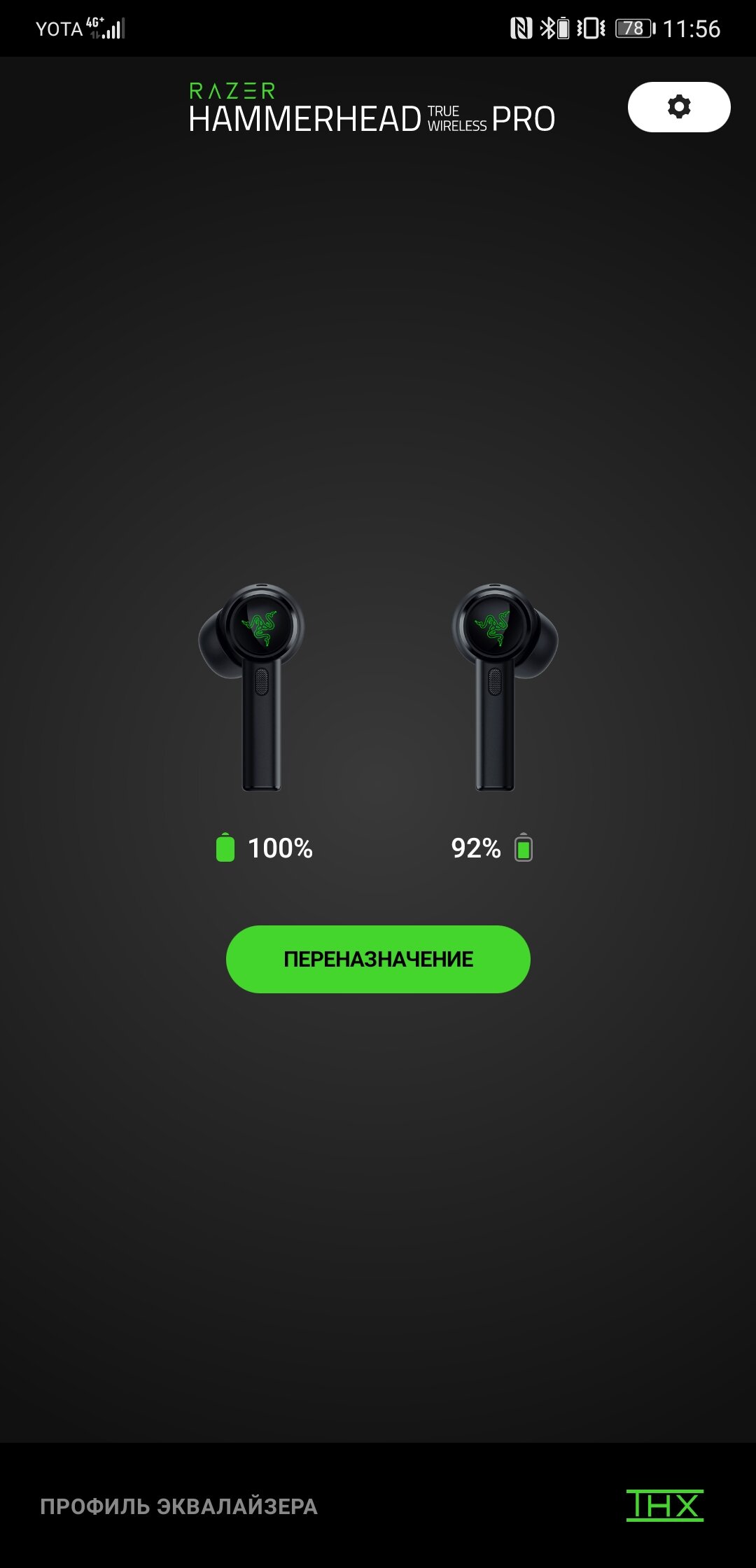 В приложении есть 5 разных пресетов и ручная настройка 10-полосного эквалайзера. Наиболее сбалансированный режим «THX» с насыщенной серединой и мощными басами, которые не перекрывают прочие диапазоны. В остальном звучание очень сочное и детализированное, слушать Hammerhead True Wireless Pro приятно.