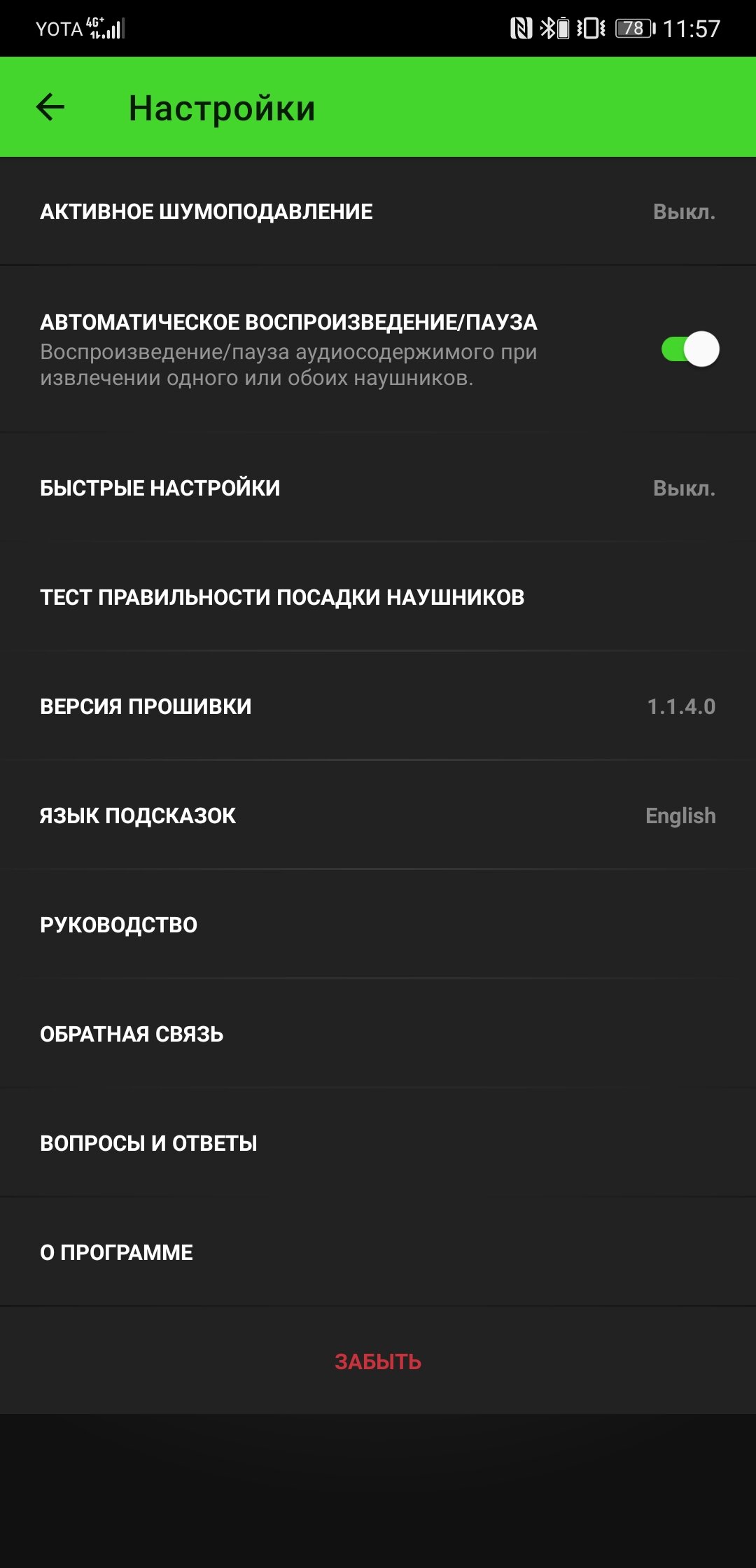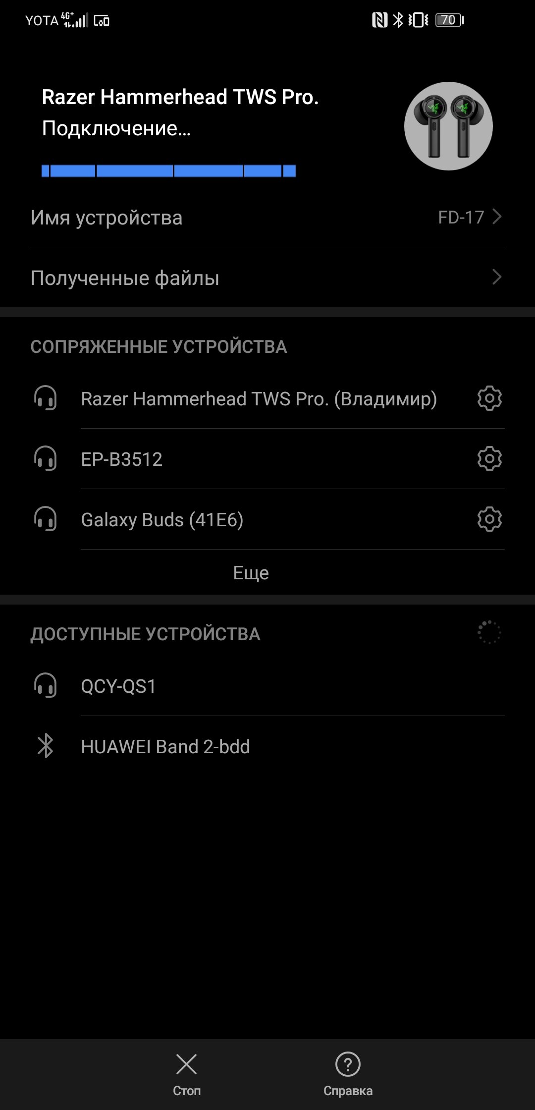 Штатных уведомлений с уровнями зарядки нет. Эта информация и всё управление доступно через фирменную утилиту. Помимо прочего с её помощью можно переключать язык голосовых подсказок (русского в списке нет) и обновлять прошивку. За месяц использования Razer обновляли Hammerhead True Wireless Pro дважды.