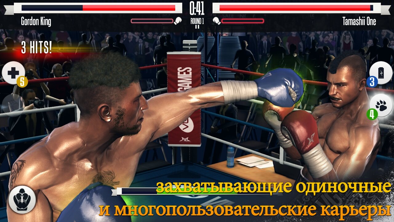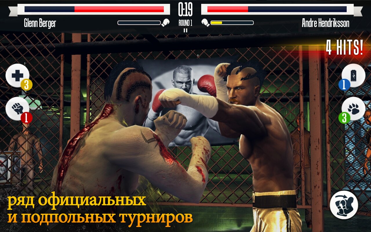 - СНОГСШИБАЮЩИЙ РЕЖИМ ПЛАТФОРМ И ПОДПОЛЬНЫЙ ТУРНИР. Испытай свои боксерские навыки, сразившись с невероятными боссами в режиме платформ Real Boxing, или примени их на деле в Подпольном турнире и открой совершенно новое снаряжение для своего боксера!