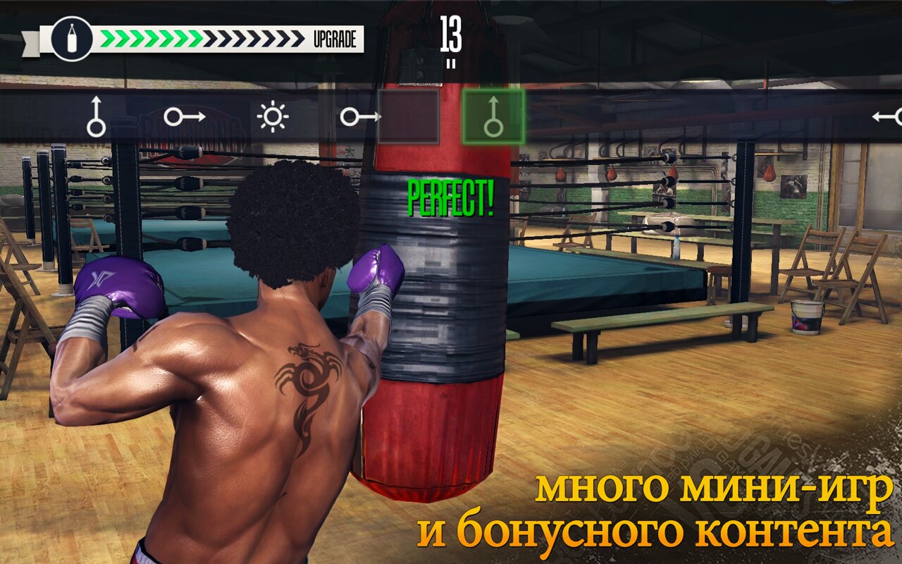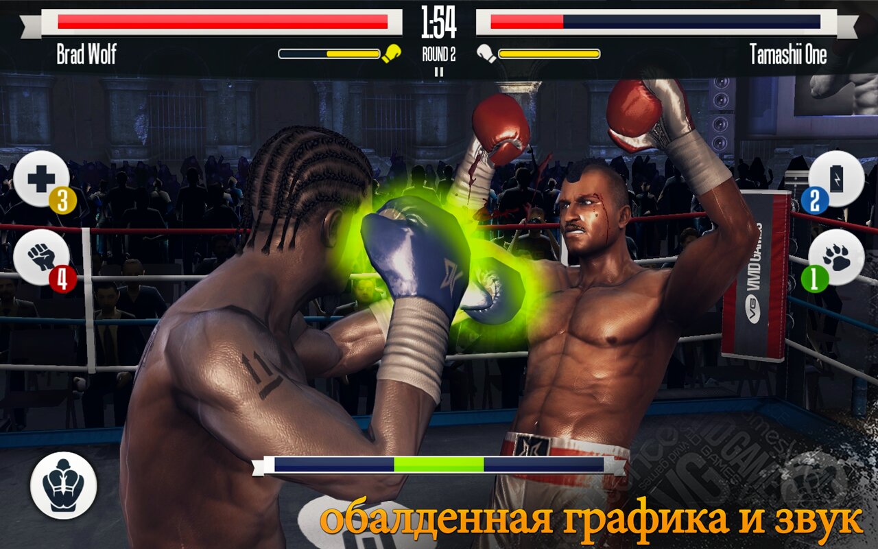 - СНОГСШИБАТЕЛЬНЫЕ ВОЗМОЖНОСТИ ИГРЫ. Боксируй, используя широкий арсенал разрушительных ударов и комбинаций. Поверни ход игры в свою пользу, воспользовавшись новой системой бонусов. Почувствуй каждый джеб, хук или апперкот благодаря интуитивной и чуткой системе управления.