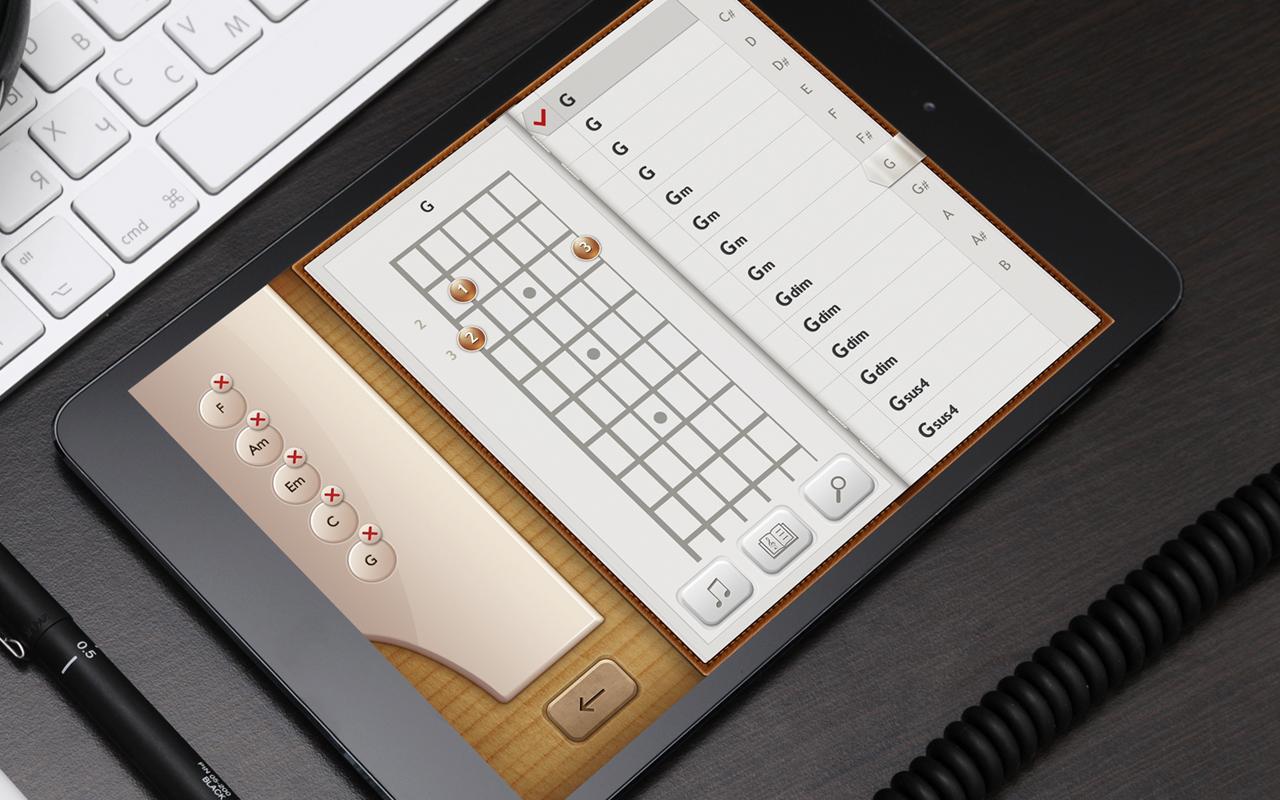 - Огромная база аккордов (около 1000!)