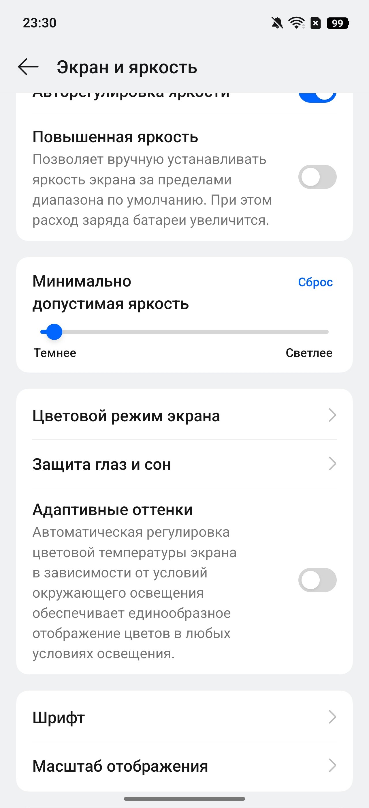 Из интересных фишек экрана стоит отметить очень высокую ШИМ-частоту 4608 Гц — для пользователей, которые восприимчивы к мерцанию дисплея, особенно на низкой яркости, это является важным бонусом, существенно повышающим комфорт от эксплуатации устройства.