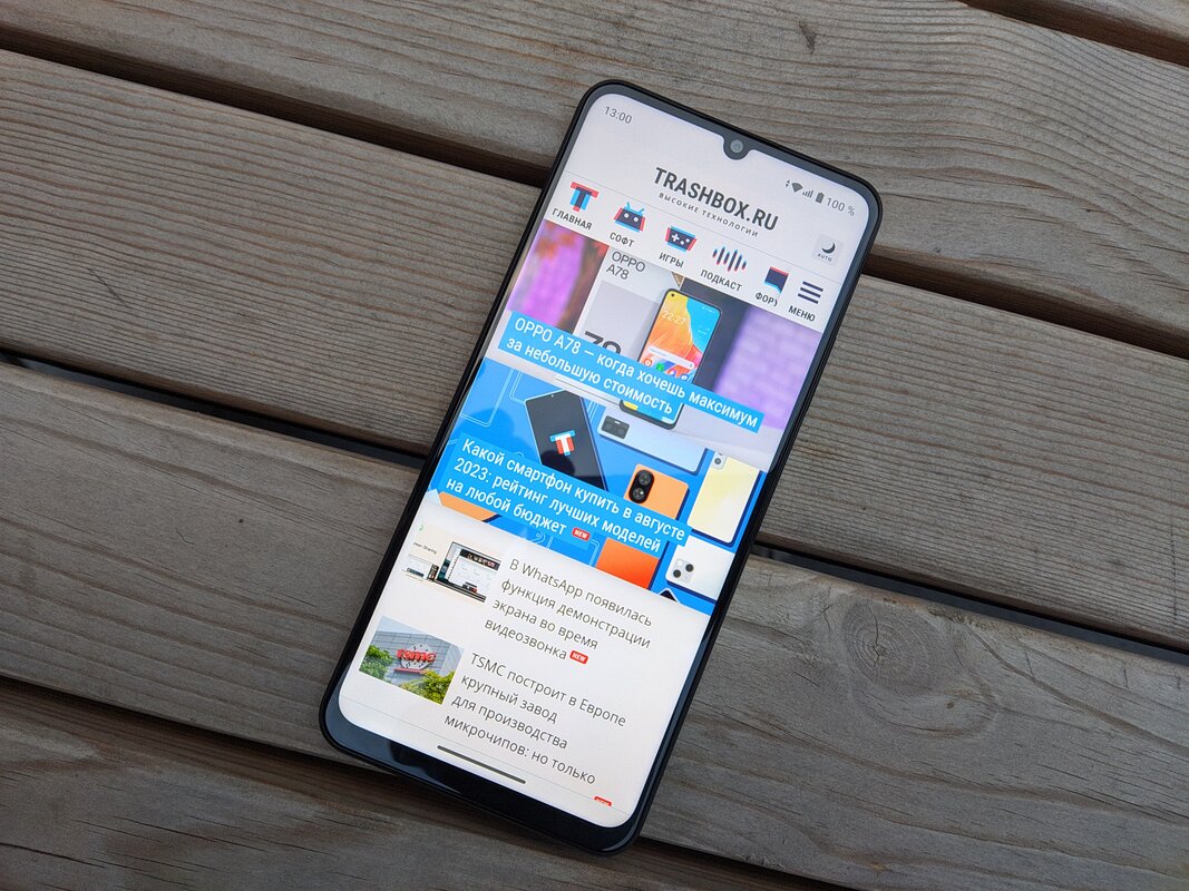 IPS-матрица смартфона диагональю 6,74 дюйма работает на частоте 90 Гц и обладает частотой дискретизации 180 Гц, благодаря чему такие действия, как скроллинг и навигация в меню, сопровождаются плавностью и рекордной отзывчивостью. Разрешение HD+ стало компромиссным параметром, однако на практике оно может давать неплохую прибавку к автономности, что мы непременно проверим при помощи теста батареи Трешбокса в рамках грядущего обзора realme C53.
