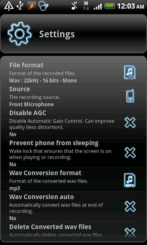 - Запись в 8kHz, 11kHz, 22kHz и 44kHz — 16 бит — моно или стерео.
