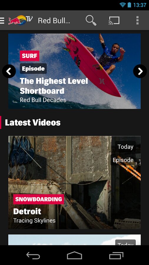Red Bull TV — это бесплатное приложение для стриминга, которое позволяет смотреть широкий спектр живых трансляций, фильмов, сериалов, концертов и других видеоматериалов, связанных с экстремальными видами спорта, музыкой и культурой. С помощью этого приложения вы можете наслаждаться большим количеством контента на своем мобильном устройстве в любое время и в любом месте. Пользователи могут выбирать из различных категорий, таких как экстремальные виды спорта, события и фестивали, музыка, культура и другие.