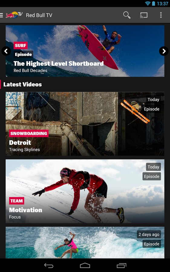 - Бесплатный контент: Red Bull TV предлагает свой контент абсолютно бесплатно и без рекламы.