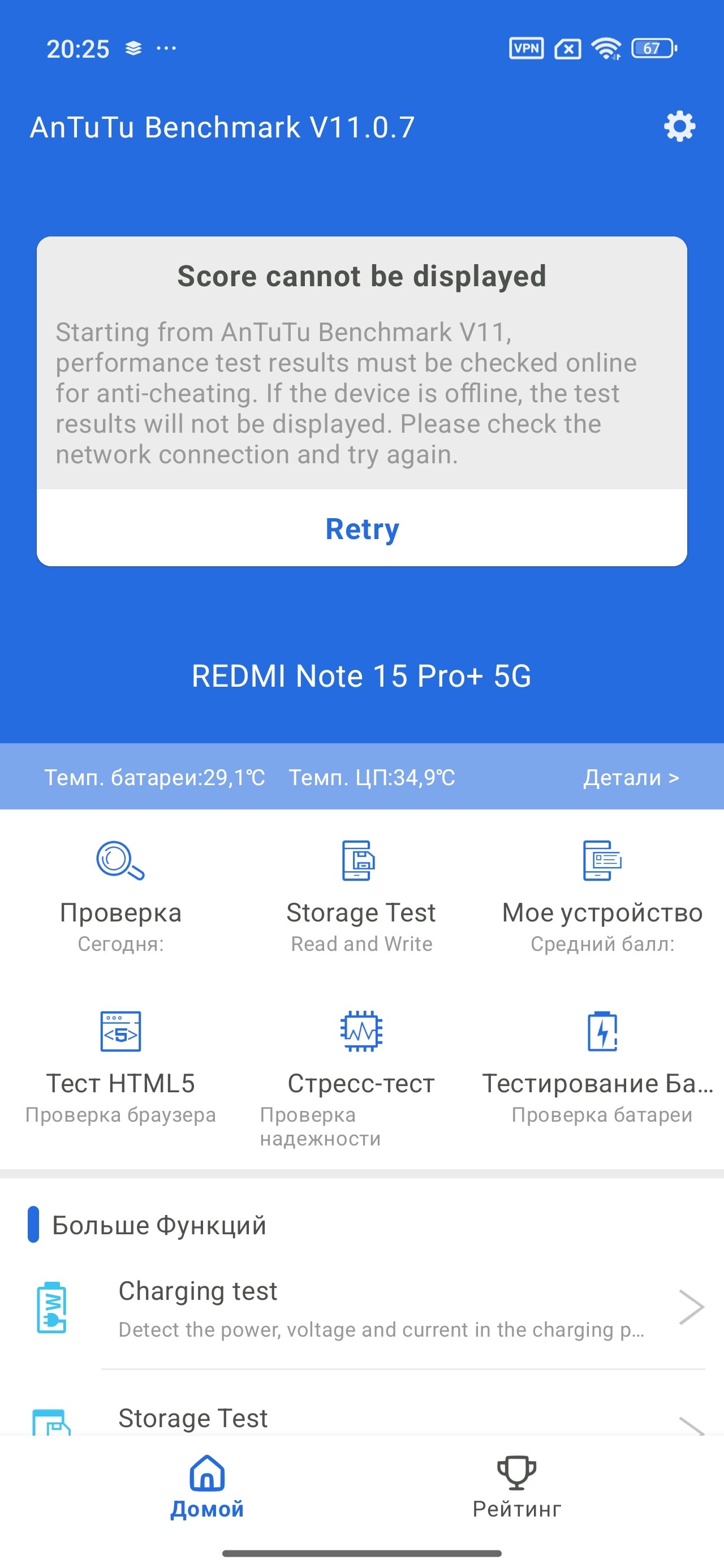 С теорией покончено, давайте перейдём к практике. Здесь меня ждал неожиданный сюрприз, поскольку на моём экземпляре почему-то отказываются загружаться синтетические тесты во многих бенчмарках — и по Wi-Fi, и по мобильному интернету. Видимо, у меня предрелизная версия прошивки, в которой есть такой момент.