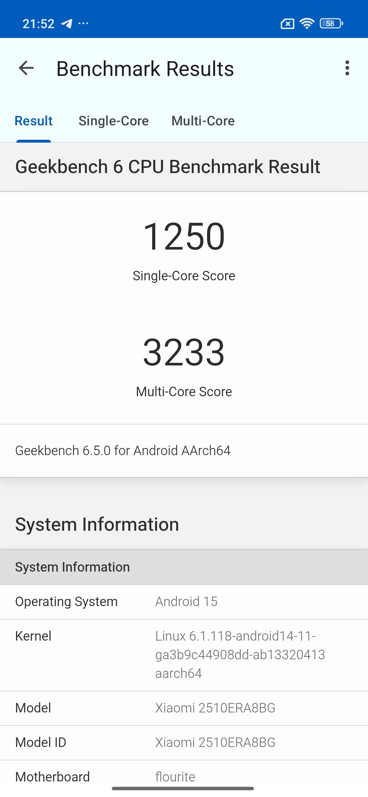 - Geekbench 6 (все ядра): 3060 баллов.