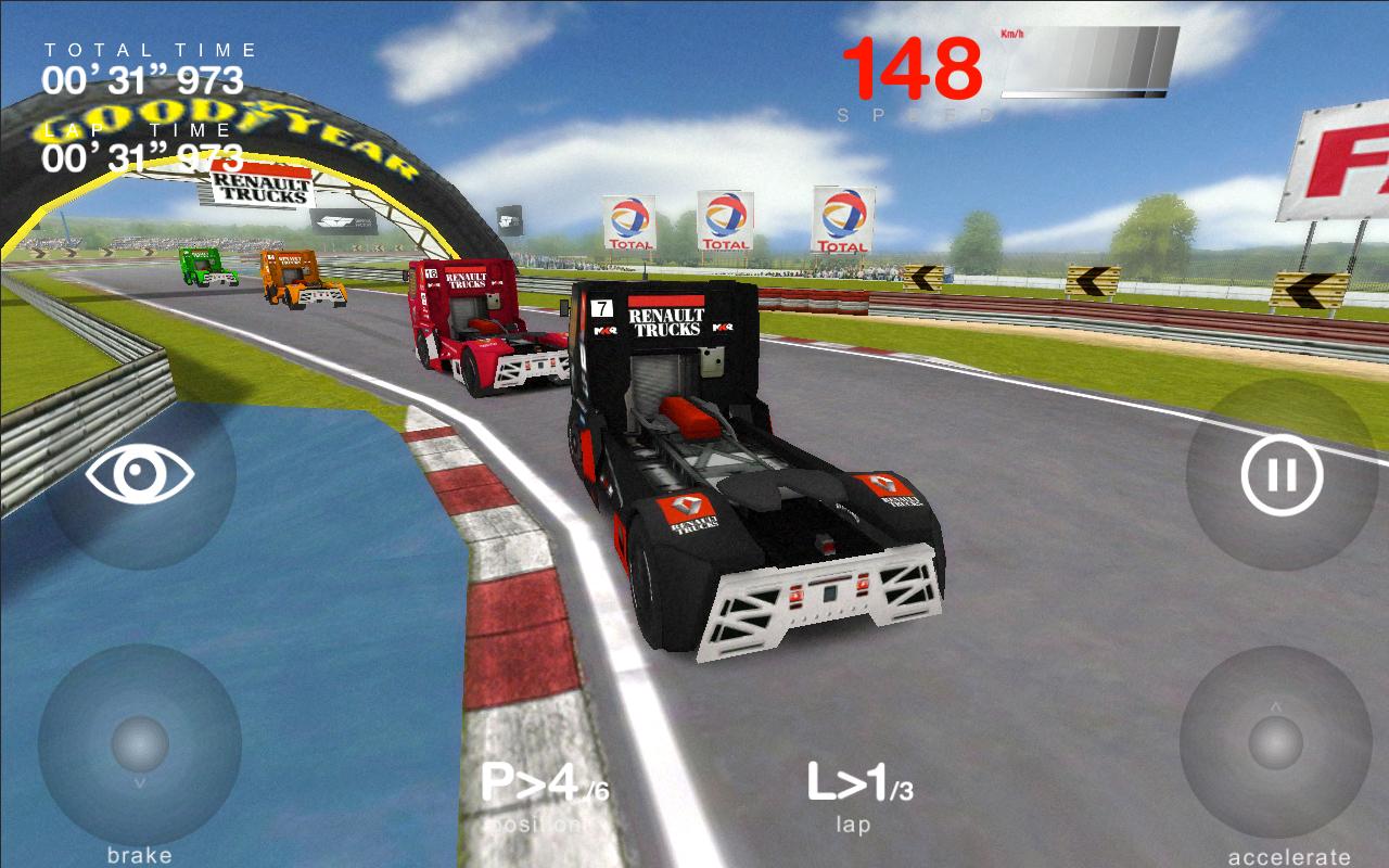 Игра от известной французской компании «Рено». Вам предстоит взять на себя управление одним из предоставленных грузовиков Renault, имеющим под капотом табун в тысячу лошадей и легко разгоняющимся до 160 км/ч. Доступно несколько режимов игры: обучение, быстрая гонка и чемпионат. Вас ждут опасные повороты, вылеты с трассы и столкновения с другими грузовиками. В графическом плане игра выполнена довольно качественно. Кроме того, Вы сможете настроить качество эффектов в параметрах игры.