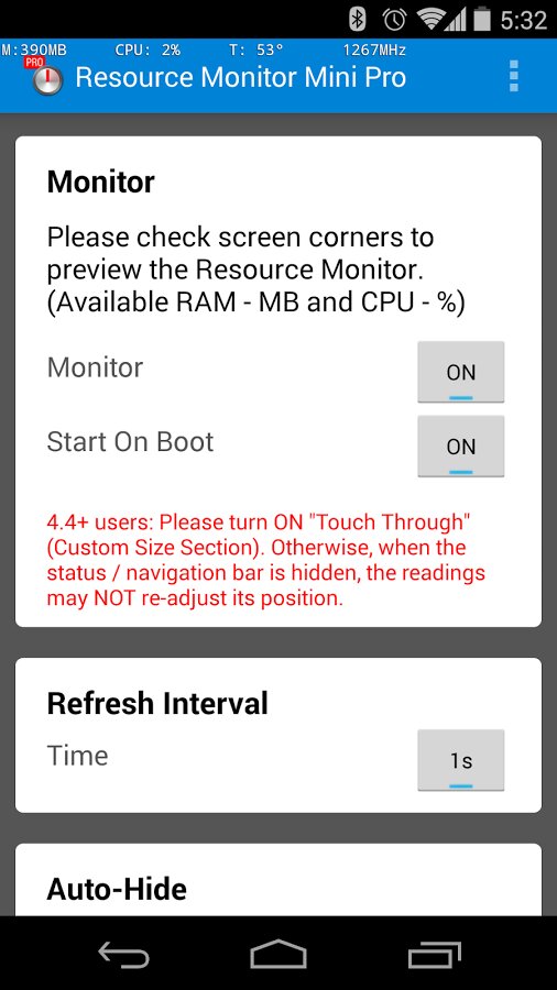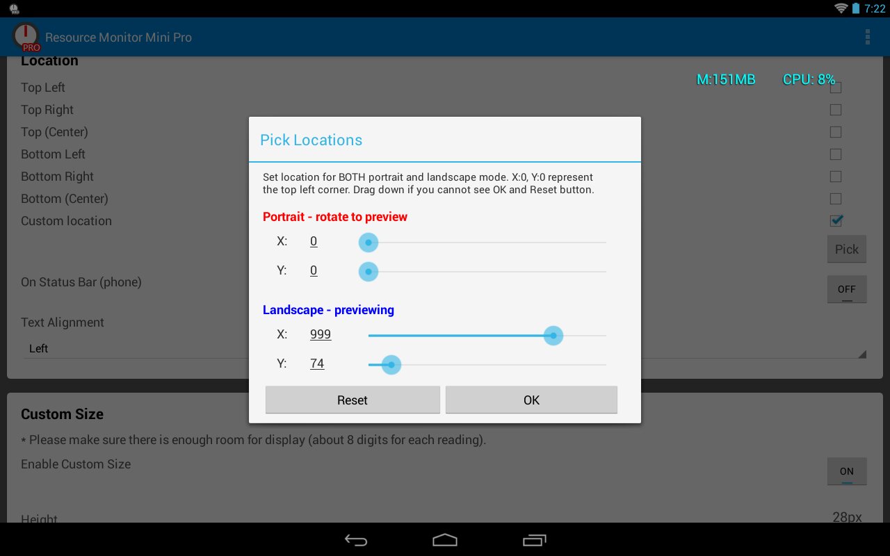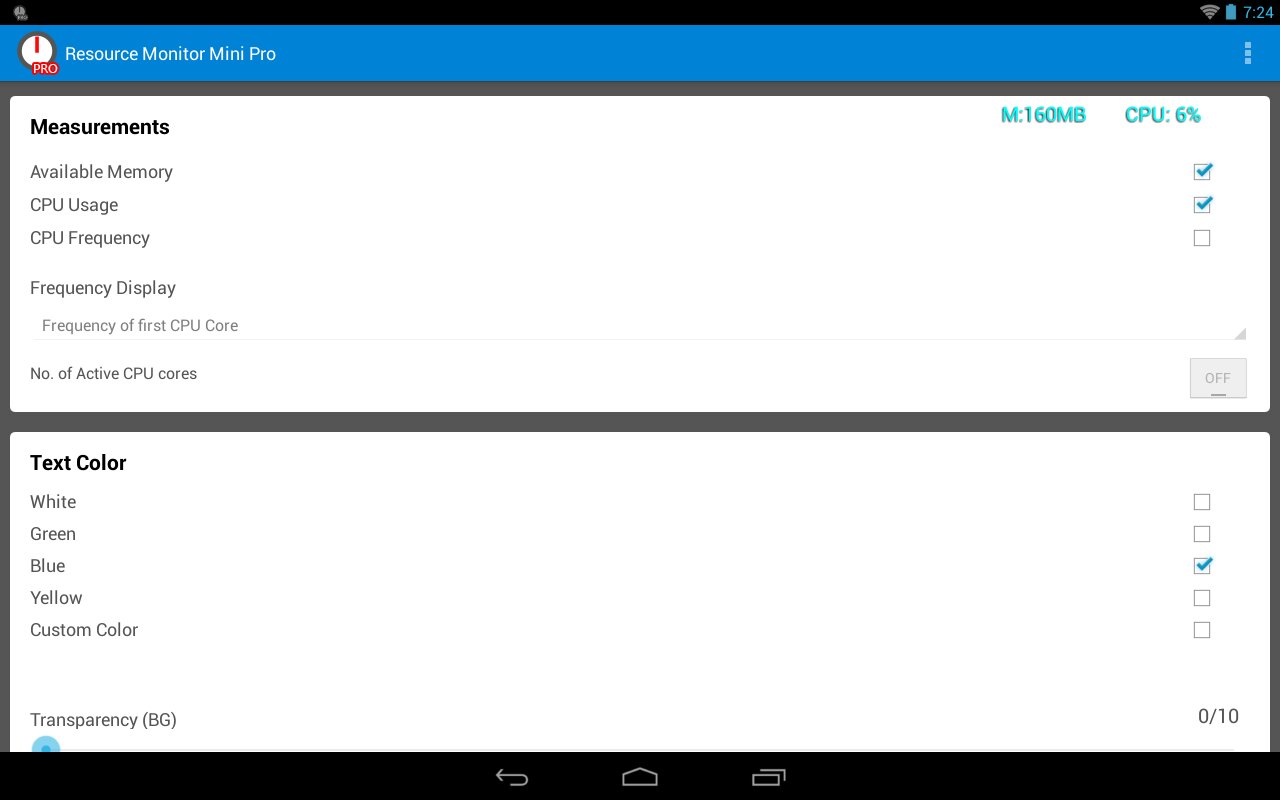 Это мини-монитор ресурсов для вашего телефона. Он контролирует свободную память (RAM) в мегабайтах и CPU (процессора) использование в %. Он всегда будет оставаться в углу экрана телефона. Вы можете установить индикатор по всем углам экрана, настроить цвет и прозрачность индикатора. Таким образом, вы можете управлять своим смартфоном и видеть статистику потребления ресурсов, как и что вы делаете!