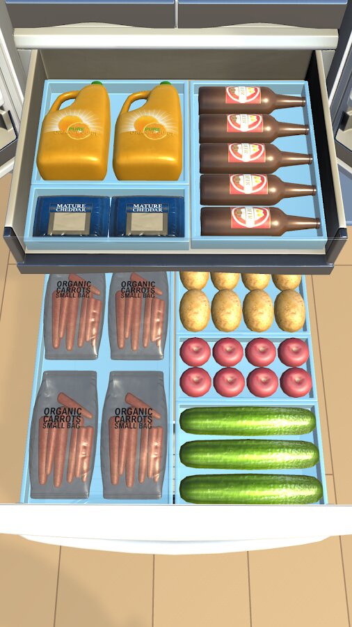 Restock — после похода в магазин за продуктами вам нужно заполнить холодильник новыми запасами. Тщательно разложите продукты и разместите их как можно лучше. Новые уровни, бесчисленное количество предметов, множество способов организовать свою кухню!