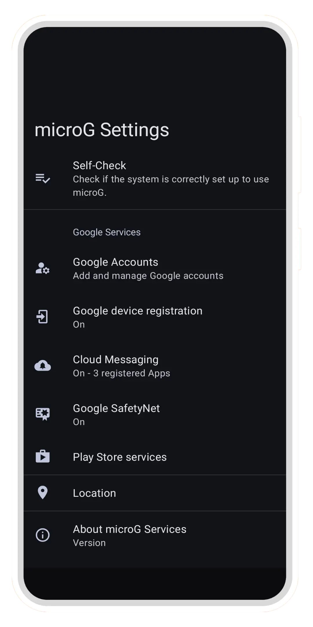 Revanced microG Services — это FLOSS (свободное/бесплатное программное обеспечение с открытым исходным кодом) фреймворк, позволяющий приложениям, разработанным для Google Play Services, работать на системах, где Play Services недоступны.