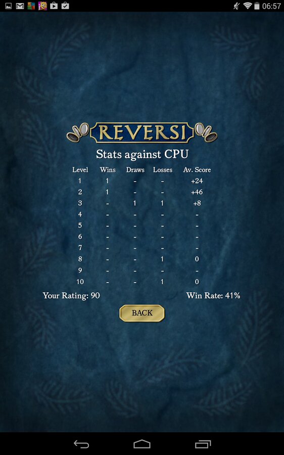 Reversi Free — одна из наиболее популярных и распространенных настольных стратегических игр для Android-устройств. Целью игры является захват фишек противника, при этом надо стараться не дать захватить свои. Играть можно как против искусственного интеллекта, так и против человека на одном устройстве. В настройках присутствует возможность выбирать цвет фишек и игрового поля, а также задавать один из десяти уровней сложности (для игры против AI).