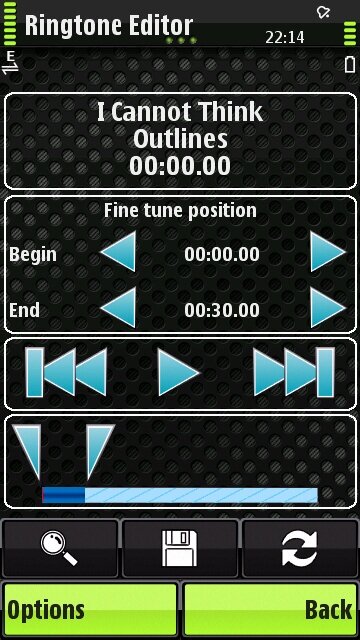 Бесплатная программа для нарезки mp3-мелодий. Всё очень просто: выбираете песню, ставите метками начало и конец рингтона, нажимаете иконку Сохранить.