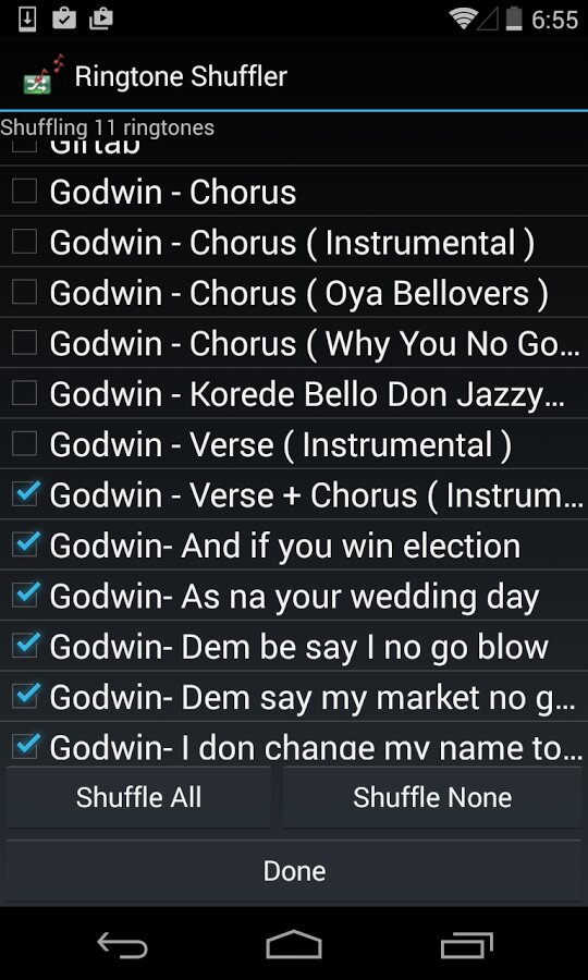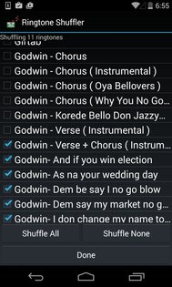 Ringtone Shuffler — позволяет назначить в качестве мелодии звонка не один файл, а несколько. Ringtone Shuffler наугад будет ставить мелодию из списка, указанного вами для очередного входящего звонка.
