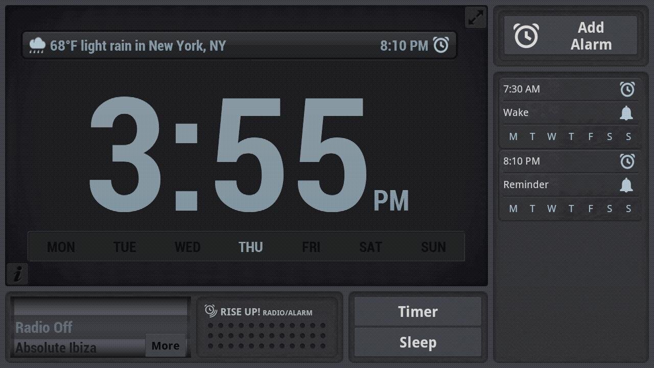 Будильник/радио/часы с виджетом и массой тем и настроек. Среди особенностей приложения — защита от случайного отключения будильника в полусонном состоянии (reaction time game), тысячи радиостанций и потрясающие темы.