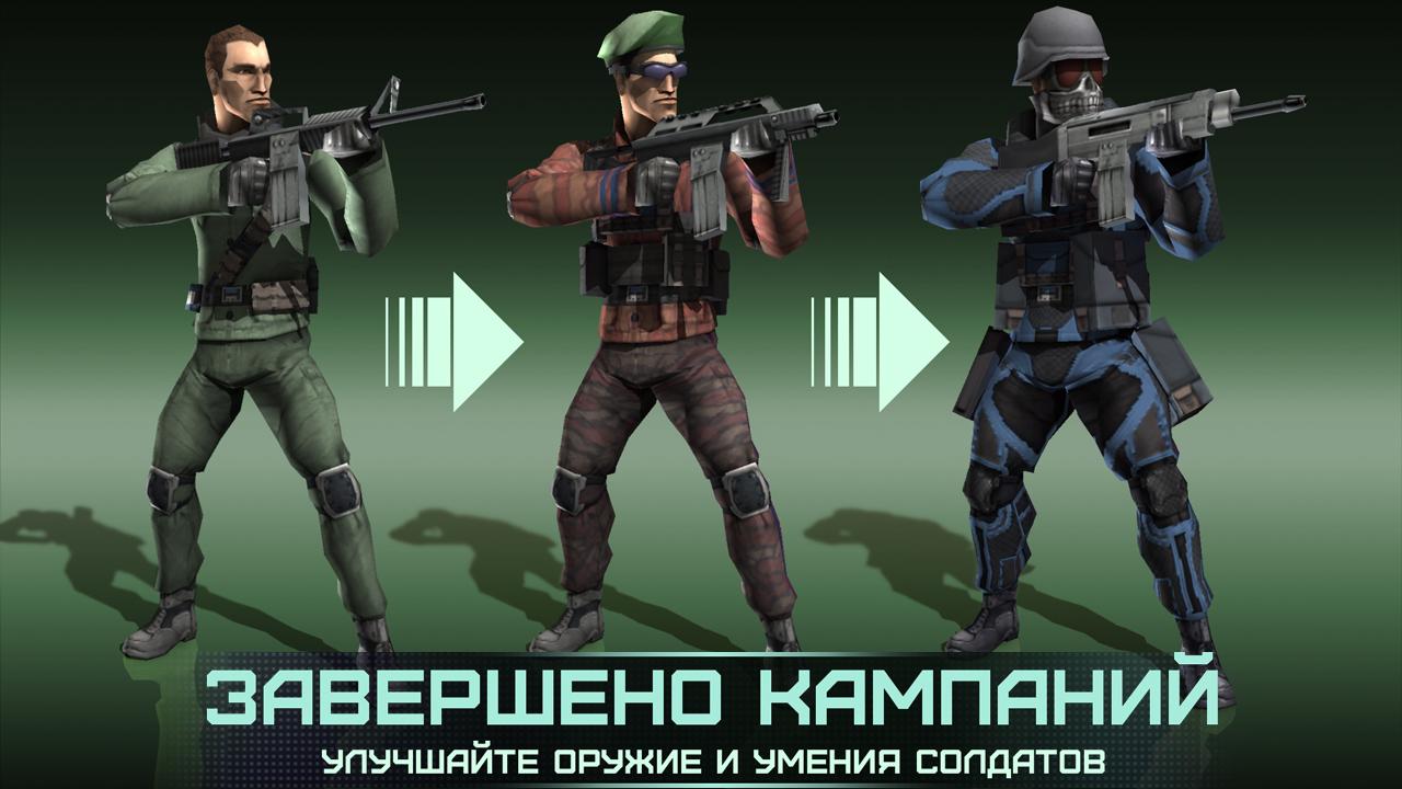 - Открывайте новых солдат с улучшенным оружием и умениями, чтобы повысить боевой рейтинг команды.