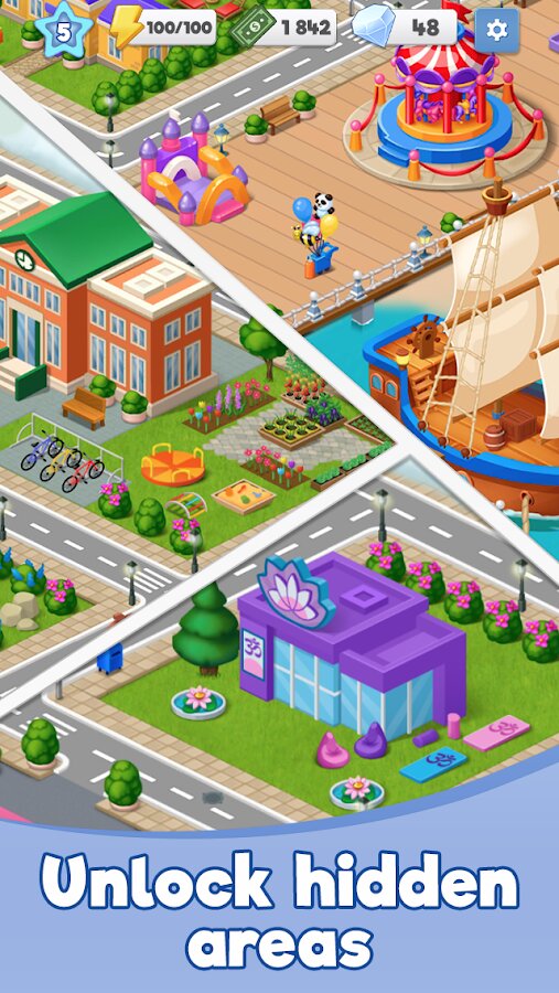 Раскрой секреты города, открывая загадочные области, разрушенные землетрясением, и восстанавливай их с нуля. Накапливай опыт, выполняя задания и открывая новые предметы для объединения, и одновременно повышай уровень, чтобы стать главным строителем Риверсайда. Ты получишь массу удовольствия от решения множества головоломок Риверсайда.