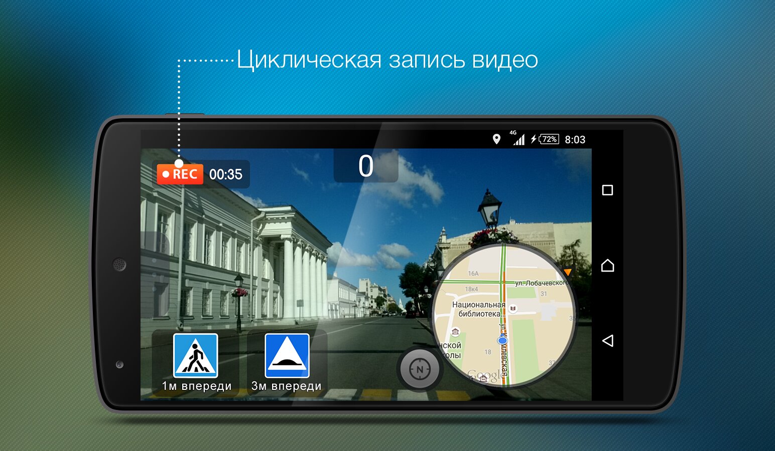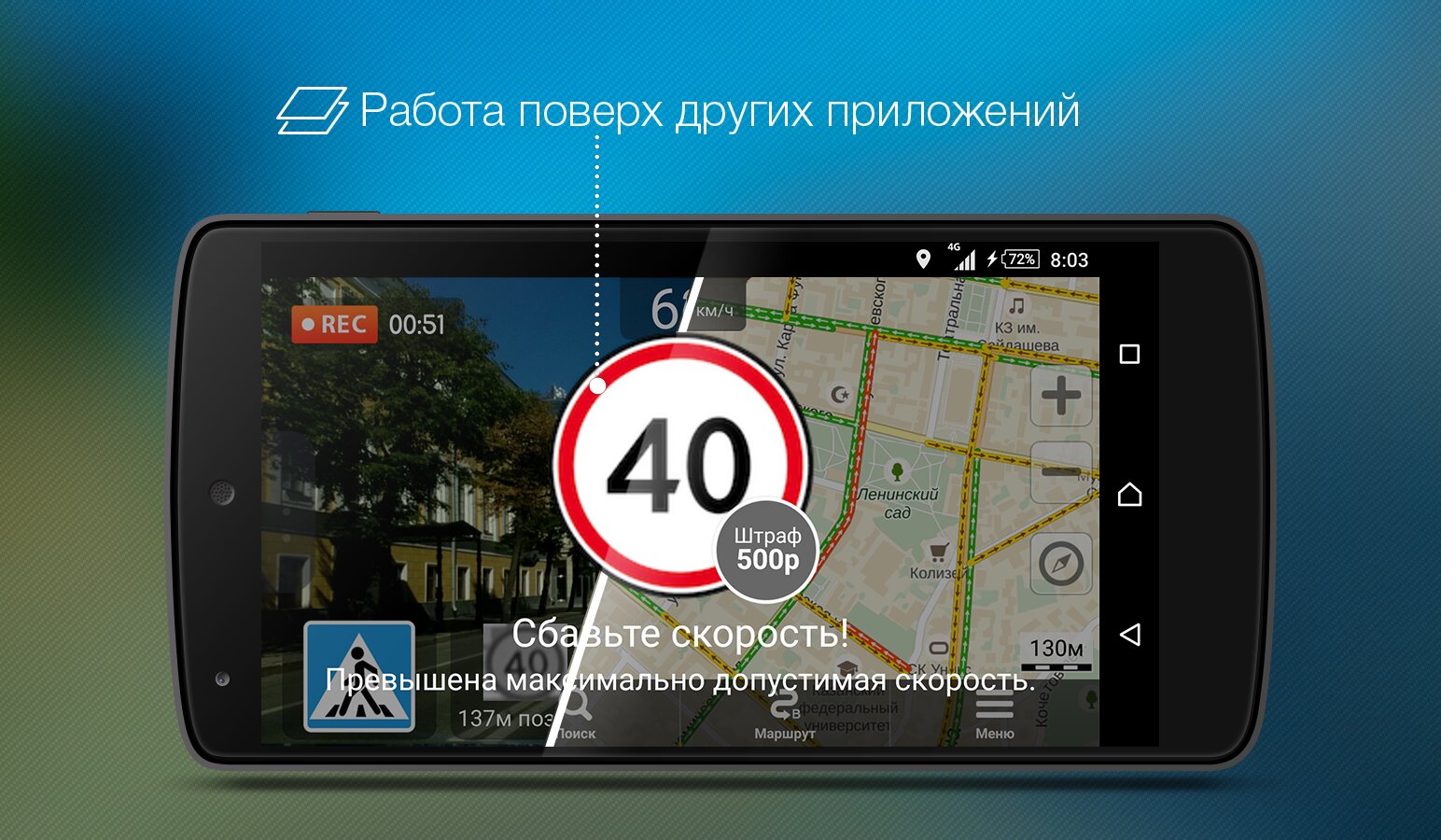 RoadAR может работать в фоне как авторегистратор и при этом выдавать предупреждения поверх любых навигационных приложений, например: Waze, Навител Навигатор ( Navitel ), Яндекс.Навигатор, Sygic, iGO и др.