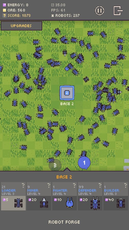 Robot Colony — это смесь стратегии и симуляции. Ваша цель — управлять производством и модернизацией автономных роботов, которые будут собирать ресурсы, разведывать территорию, строить и ремонтировать базы и защищать колонию от гигантских жуков. Игра работает оффлайн и рассчитана на управление одной рукой.