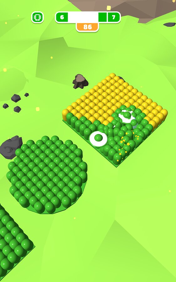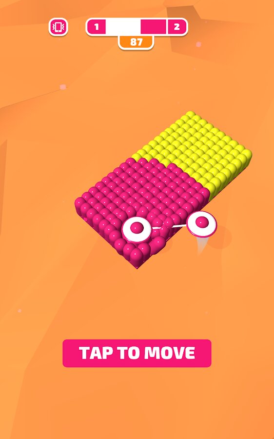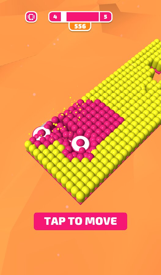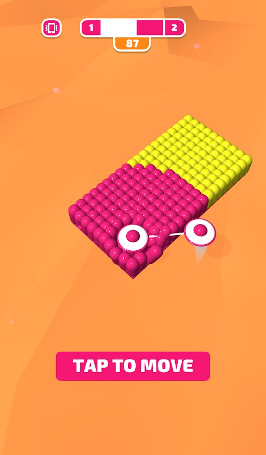 Эта аркада не так проста, как кажется на первый взгляд. Чтобы раскрасить огромные разноцветные поля нужно не только иметь в запасе свободное время, но и научиться подбирать нужный момент. На первых уровнях вы сможете ознакомиться с правилами игры, но с каждым следующим задача раскрашивания будет значительно усложняться. Чтобы передвинуть ролик, нужно тапнуть по экрану, но в какой момент это лучше сделать – решать уже вам!