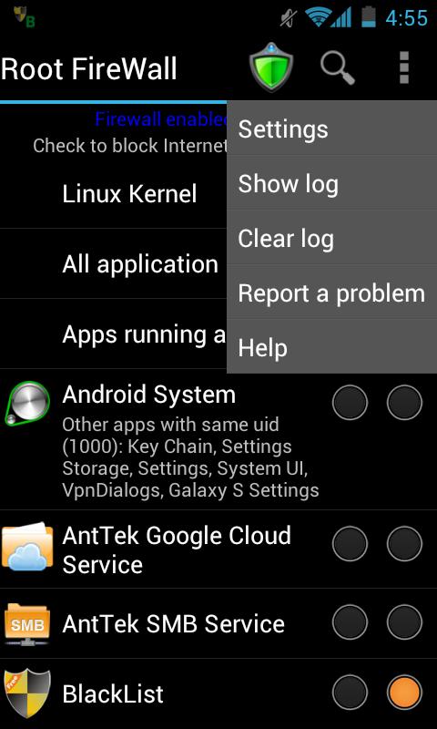 Можно выбрать, чтобы заблокировать выбранные приложения или приложения, запущенного с правами администратора. Так как он блокирует доступ в Интернет в приложении ID (UID в регулярной системе Linux), несколько приложений может быть отнесена к той же ID, вы должны блокировать все или ничего.
