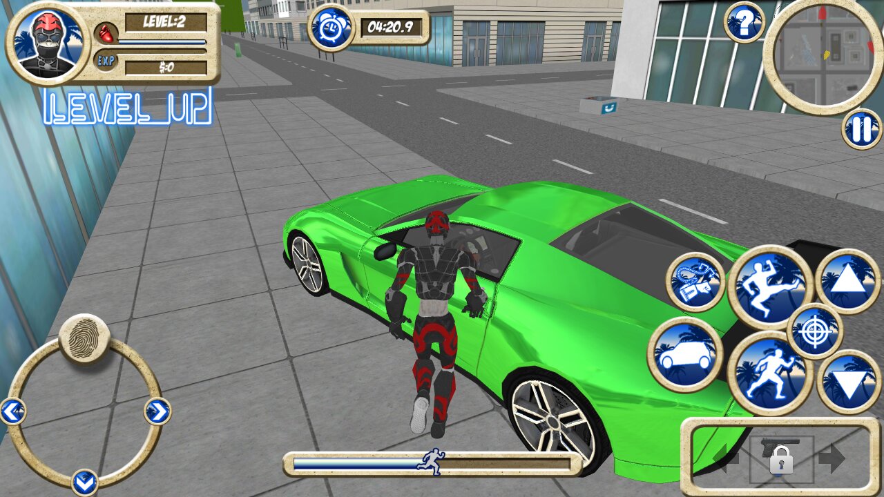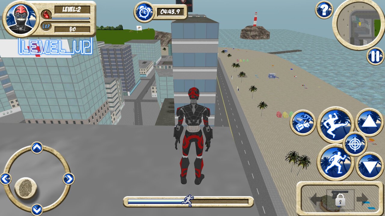 Наш робот действует круче Человека-Паука и СиДжея из GTA: San Andreas. В случае необходимости он способен подняться на специальном тросе и лазить по стенам, словно заправский супер-герой. На земле робот не только бегает и сражается, но также использует оружие и даже угоняет чужие автомобили, если того требует ситуация. На выполнение задания всегда отводится несколько минут. Этого достаточно, чтобы найти преступников и отбить им почки, а также покуролесить в городе, угоняя крутые гоночные машины и ломая столбы и магазинчики вокруг.