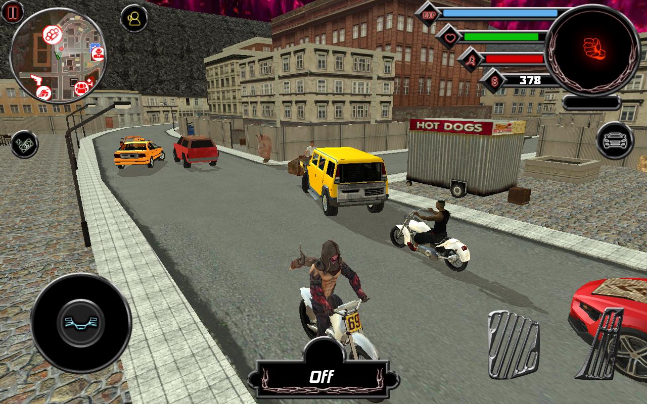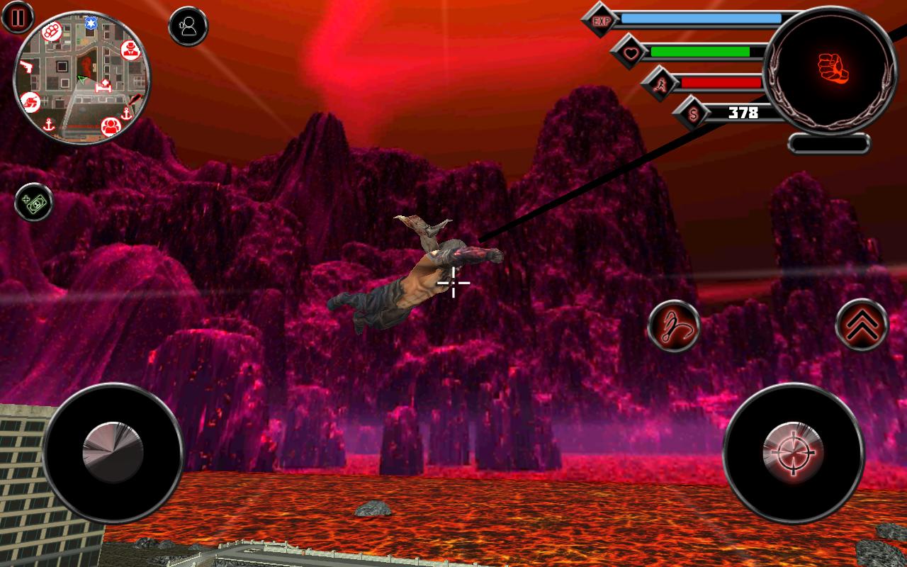 Rope Hero Hell Rise – увлекательный экшен на андроид, который перенесет вас на улицы мегаполиса где вы будете управлять демоном. Наш герой выбрался на землю из самого ада и теперь его задачей будет, мстить людям, сражаться с другими демонами и исследовать огромный город. Перемещайтесь по городу и собирайте человеческие души. Помогайте демону творить его черные дела, а также нарушать законы, угоняя машины и лазя по крышам домов. По ходу игры улучшайте навыки своего героя и осваивайте новые, которые помогут вам собрать как можно больше душ и сразиться с сильными демонами. Играйте в эту игру и наслаждайтесь отличной графикой и огромным мегаполисом.