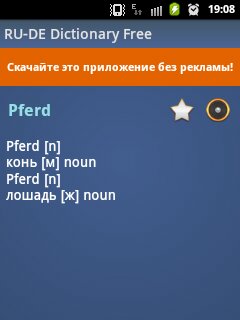 Карманный немецко-русский и русско-английский словарь. Содержит >10000 слов и словосочетаний. При первом запуске необходимо скачать около 20 Мб информации.