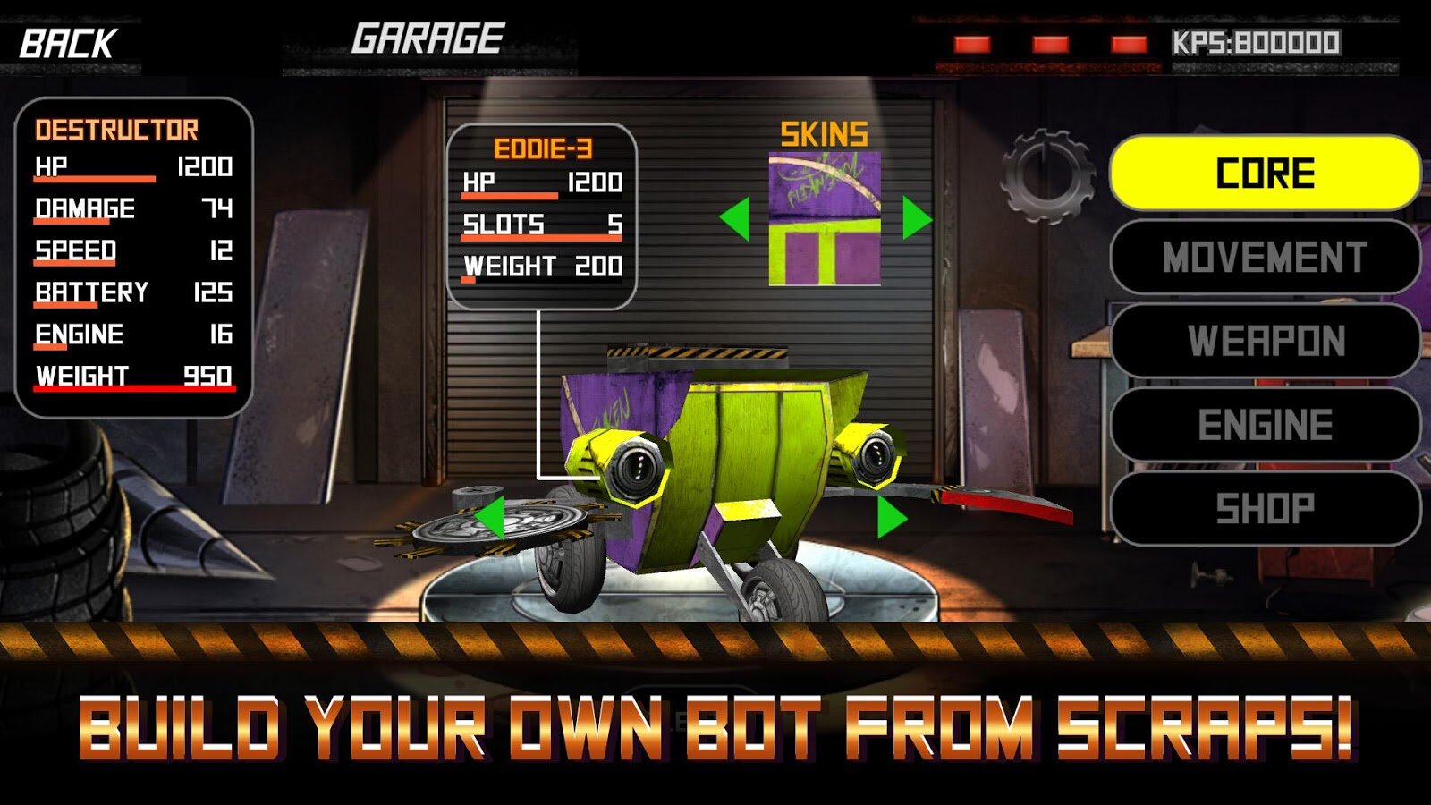 Rumble Bots — игра на андроид в которой вам необходимо собрать своего робота и участвовать им в боях. Вас ждут масса вариантов роботов. Отличные поединки и различные турниры в которых вы сможете доказать, что ваш робот самый лучший. Проводите бои, оттачивайте свои навыки управления, экспериментируйте с роботам, добавляйте новые части, совершенствуйте тактику и вы обязательно станете лидером.