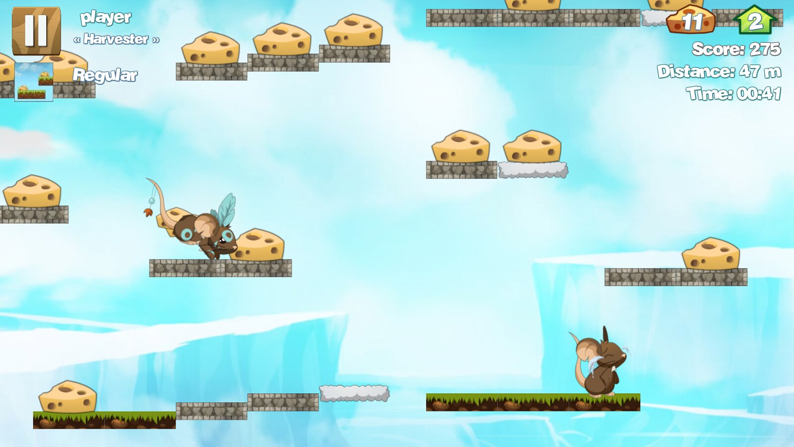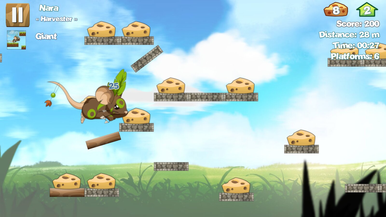 Прыгай с одной платформы на другую, избегай смертельных ловушек и врагов. Собирай бонусы, чтобы пробежать еще дальше и собрать еще больше сыра.