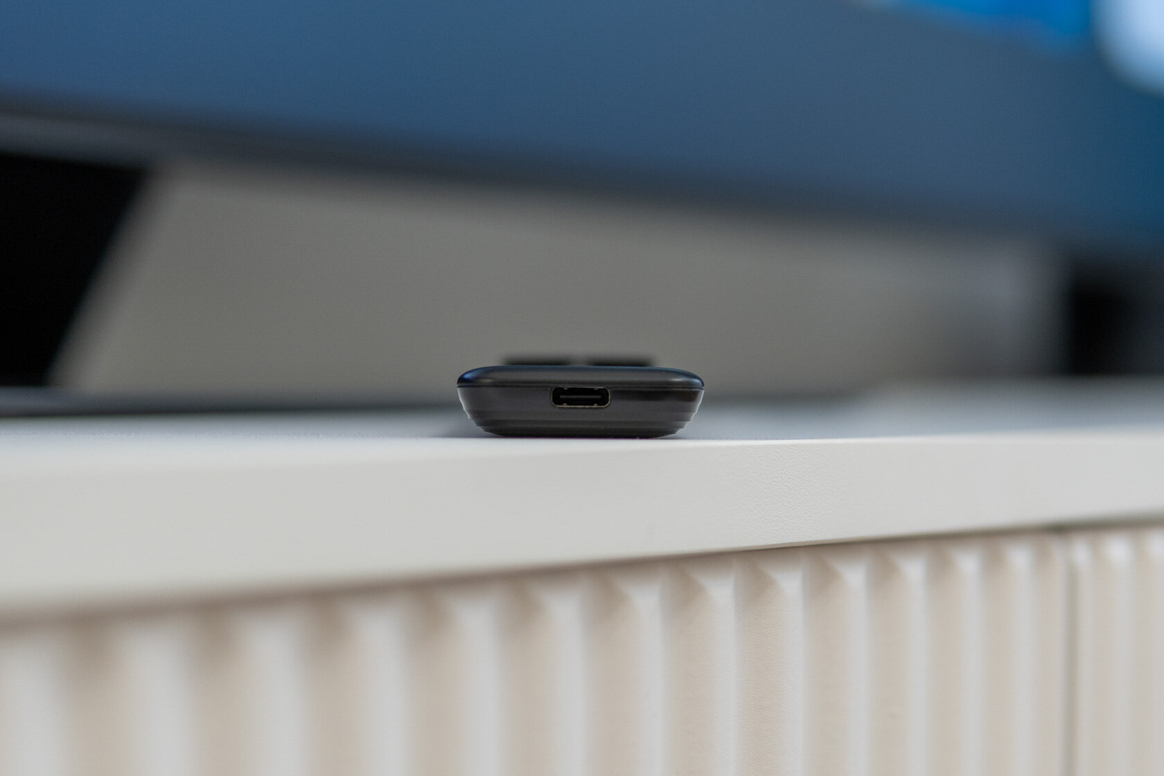 Пультик точно такой же, как и в прошлом году. По размеру миниатюрный, кнопок минимум, а зарядка с помощью солнечной панели или по USB-C. Пожалуй, это самый удачный пульт среди конкурентов за счёт небольшого веса и фирменных рычажков для регулировки громкости и переключения каналов.