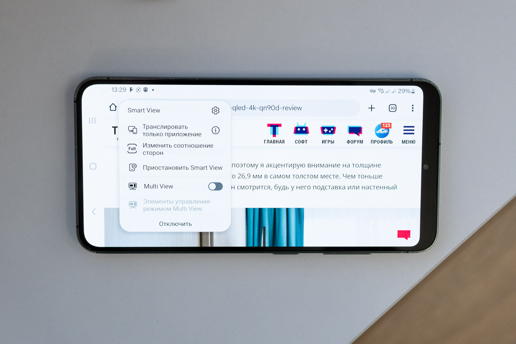 Есть и экосистемные фишки. Так, экран смартфона Samsung можно без проводов выводить на телевизор. Причём при просмотре фото и видео картинка самостоятельно разворачивается на весь экран, адаптируясь под огромную диагональ. Режим удобный и полезный.