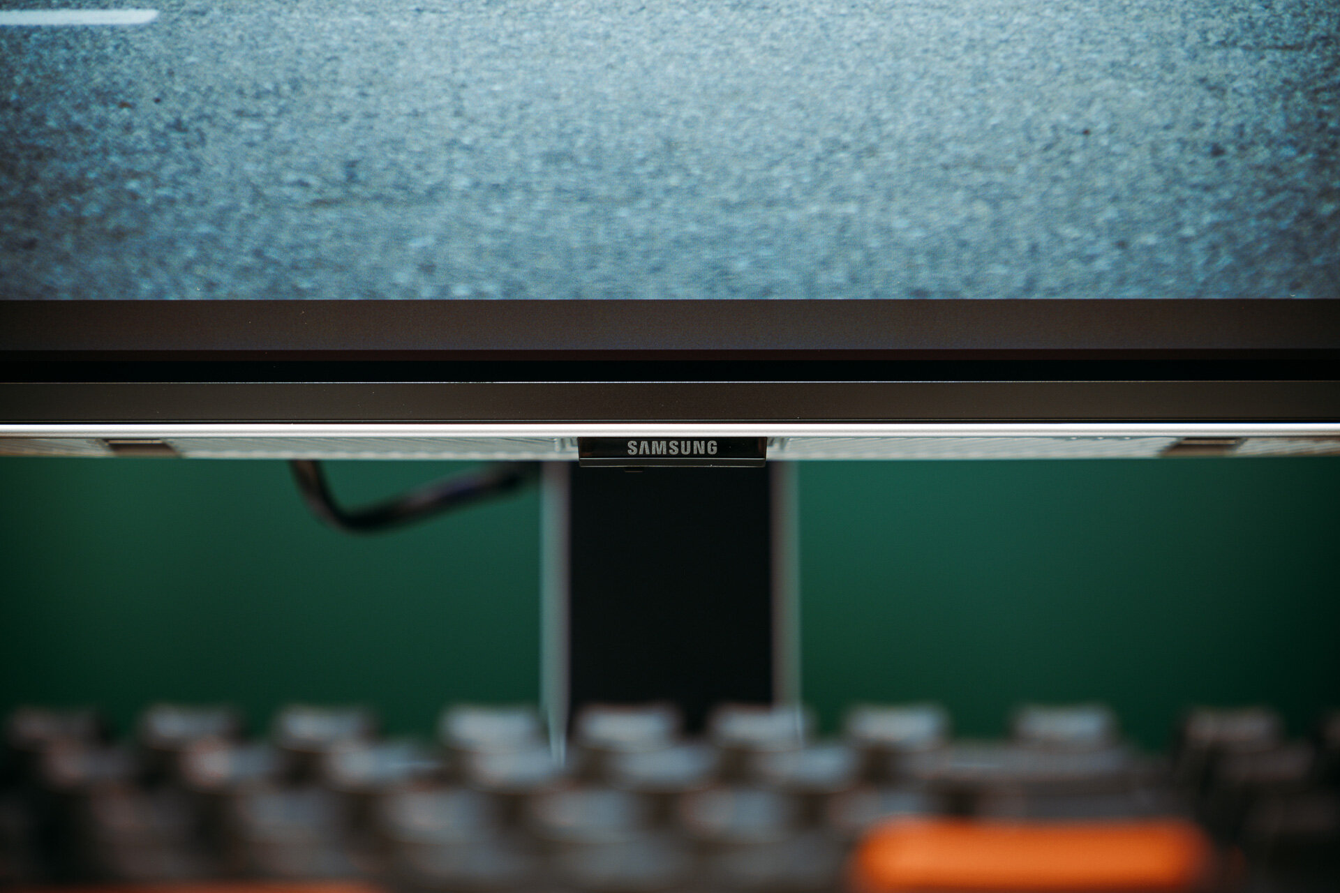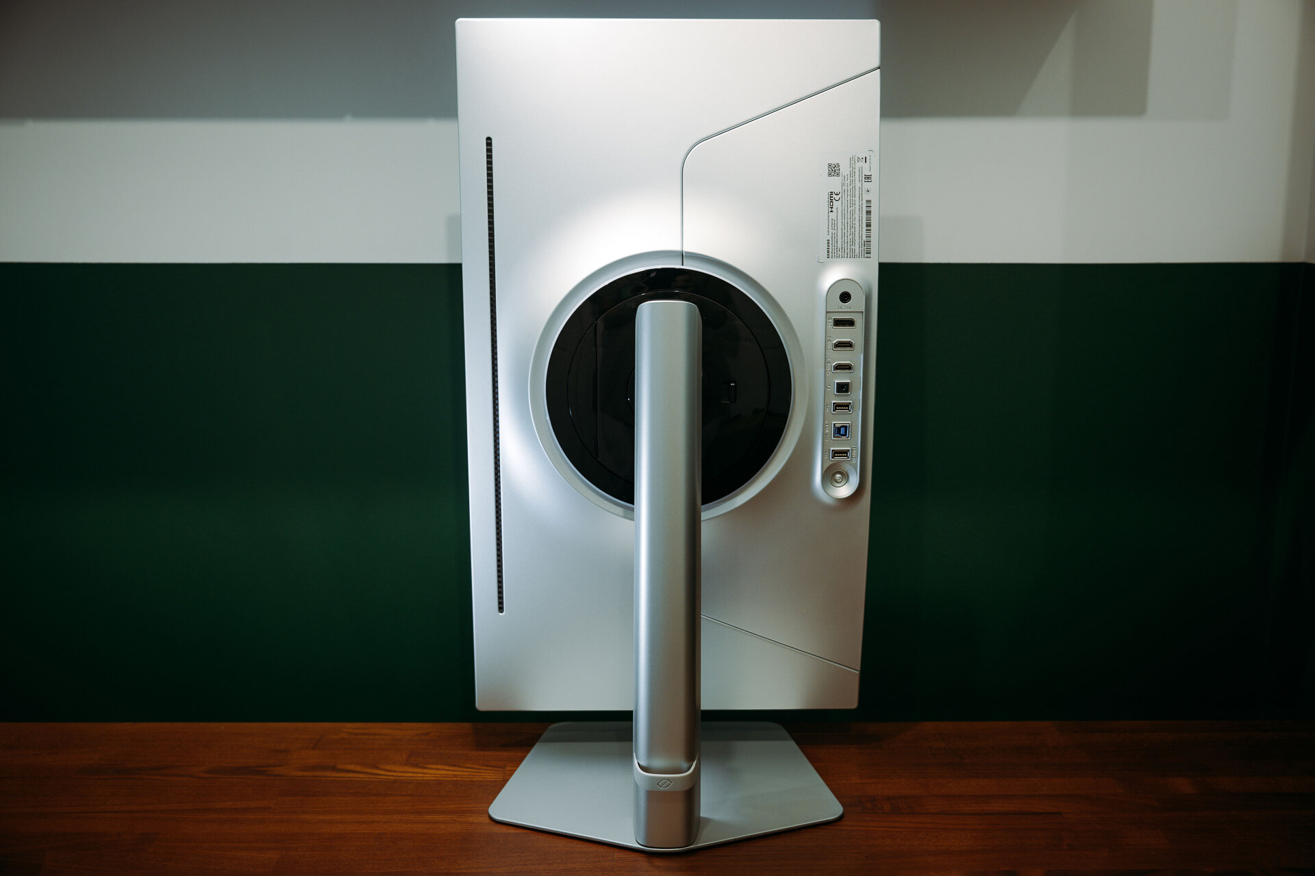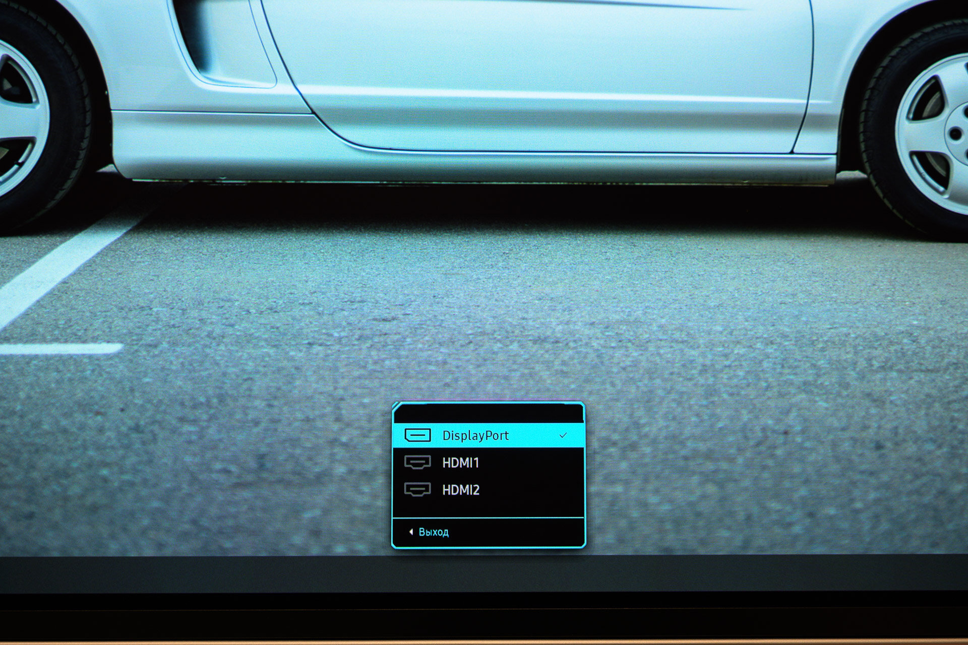 Прямо под светодиодным кольцом расположена панель портов, включающая один DisplayPort 1.4, два HDMI 2.1, два USB-A 3.2 Gen1, один USB-B и один разъём для наушников — последний здесь необходим, поскольку в модели нет динамиков, что стало следствием отказа от Smart TV и стремления снизить стоимость. Как по мне, это правильное решение, поскольку динамики в мониторах никогда не славились очень высокой громкостью или кристальным качеством. А вот чего не хватает, так это порта USB-C — в модели 2025 года он должен был быть.