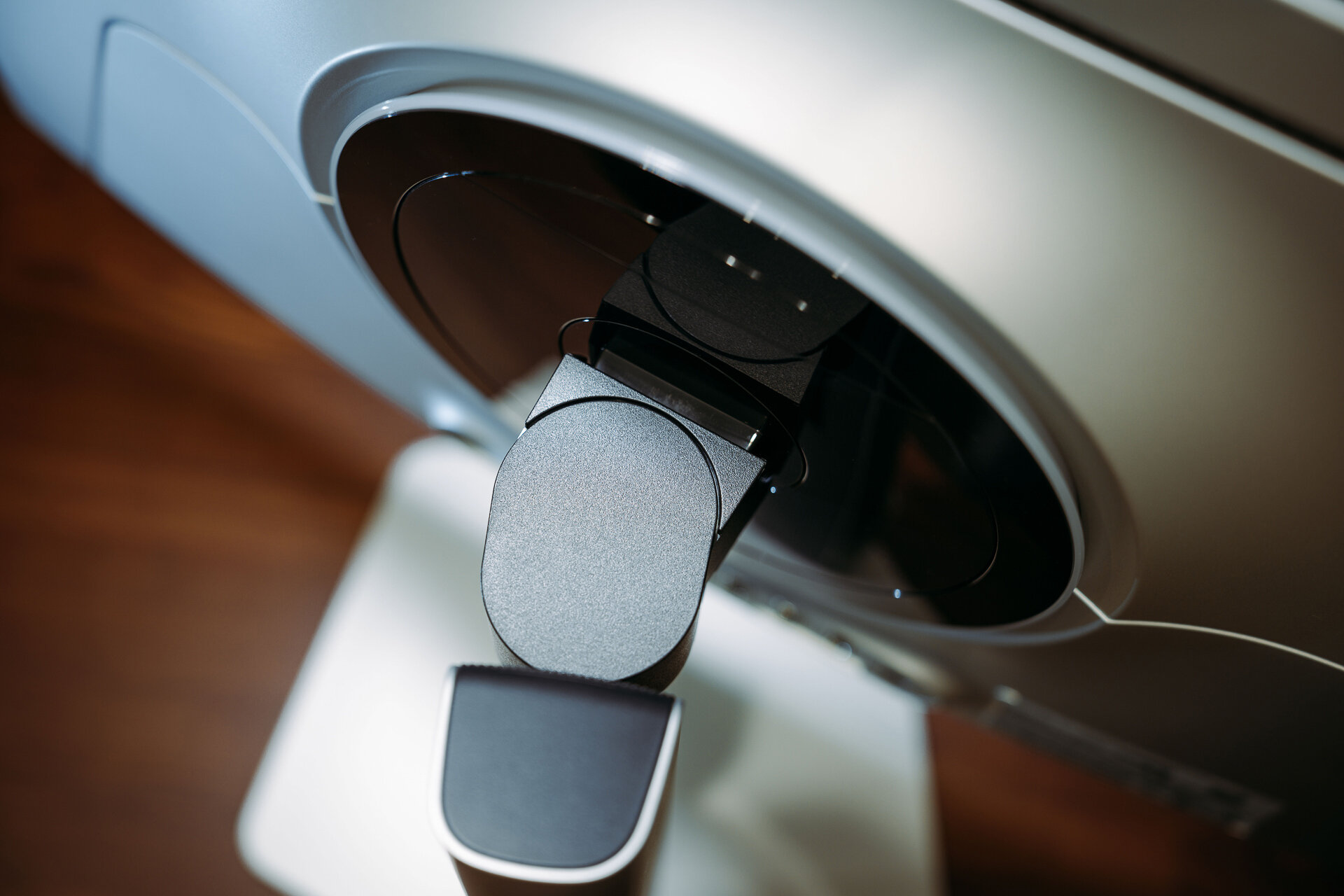 Внешне G81SF — это типичный представитель линейки Odyssey, то есть с узнаваемым футуристичным (как мне кажется) дизайном в виде серебристого корпуса и светодиодного кольца вокруг платформы для крепления подставки или кронштейна формата 100×100. Корпус здесь серебристый не просто так, он выполнен из металла, что добавляет ему премиальности.