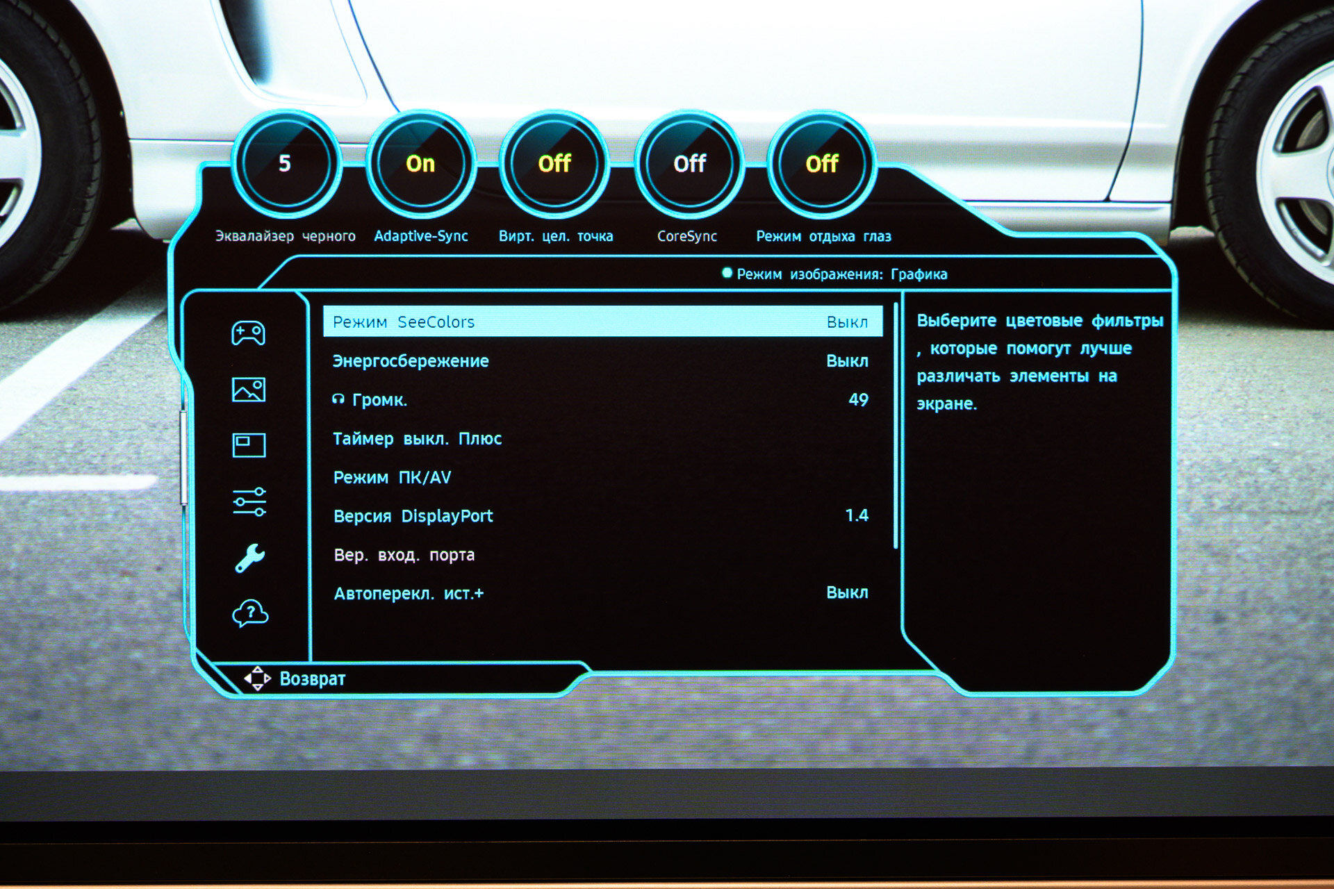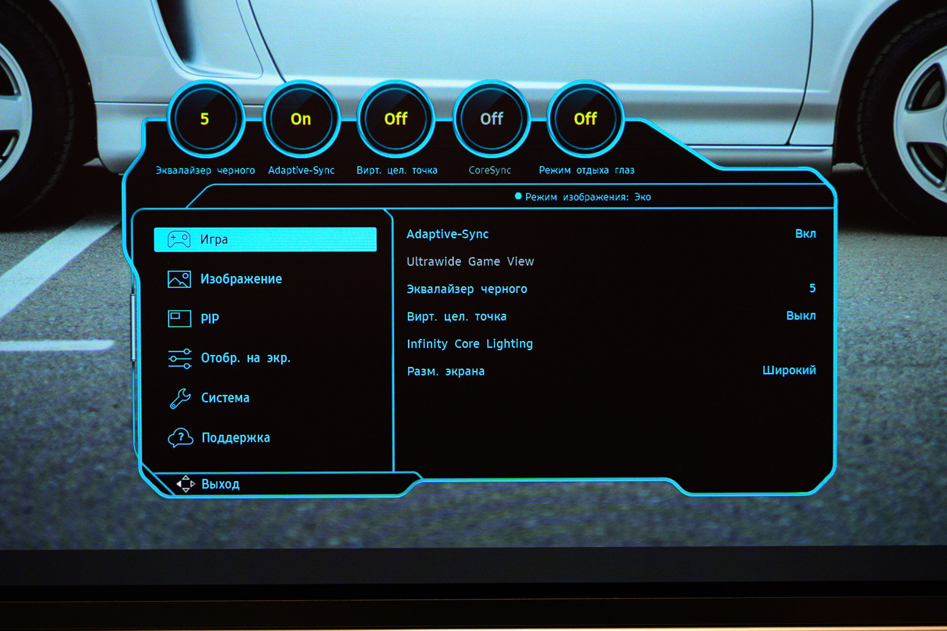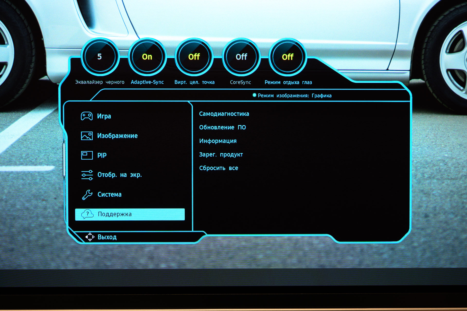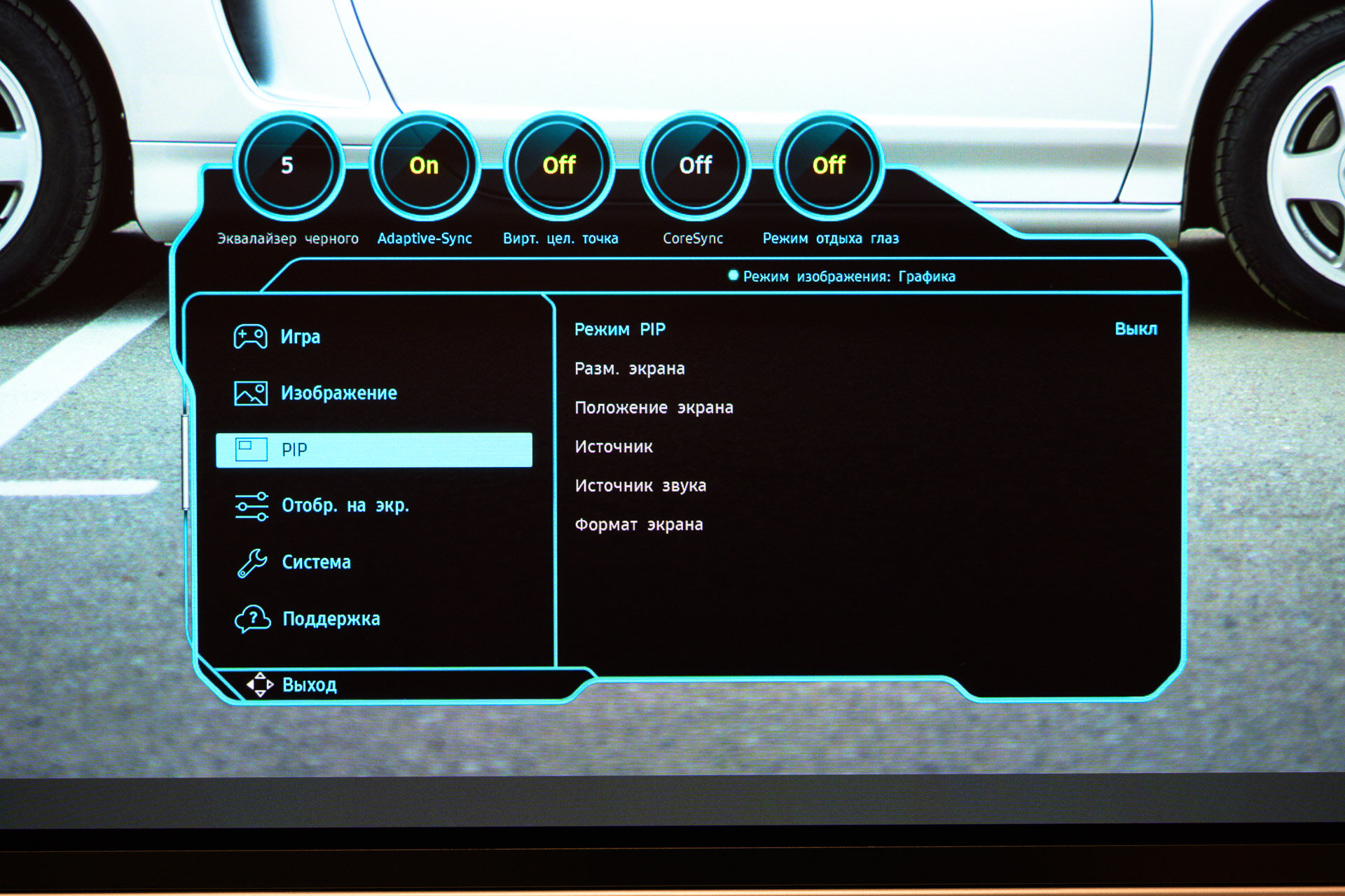 Сам по себе монитор здесь флагманский — производителю удалось взять отличную матрицу, использовать её преимущества и нивелировать недостатки. Так, здесь сверхвысокая частота, мгновенный отклик и превосходная насыщенность, а специальные технологии защищают пиксели от выгорания и максимально устраняют возможные блики.