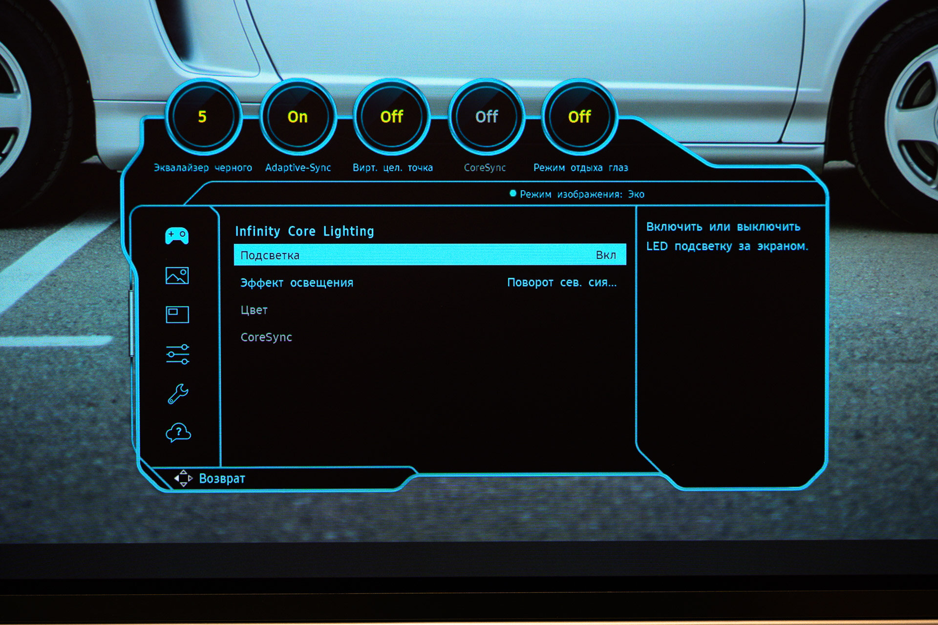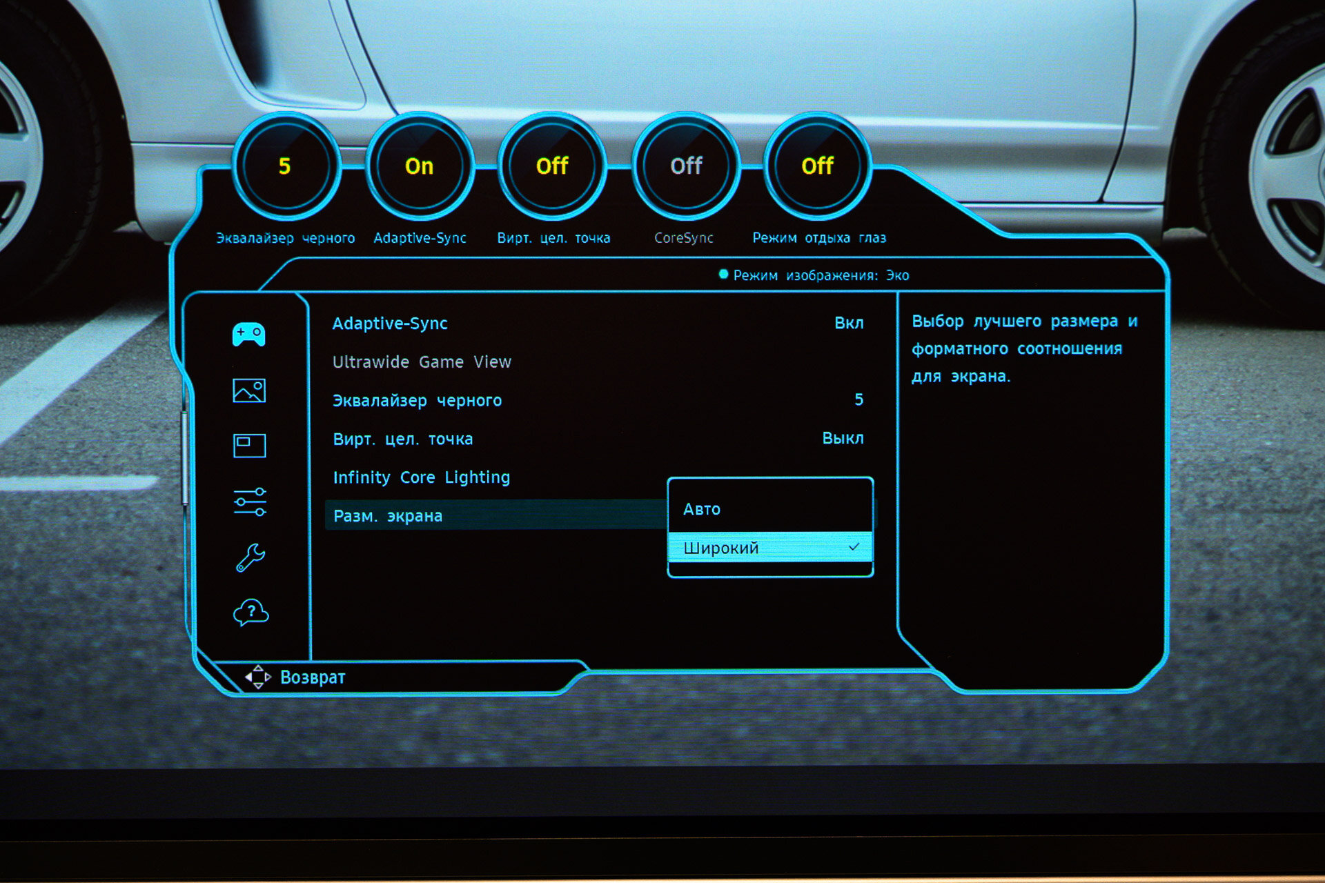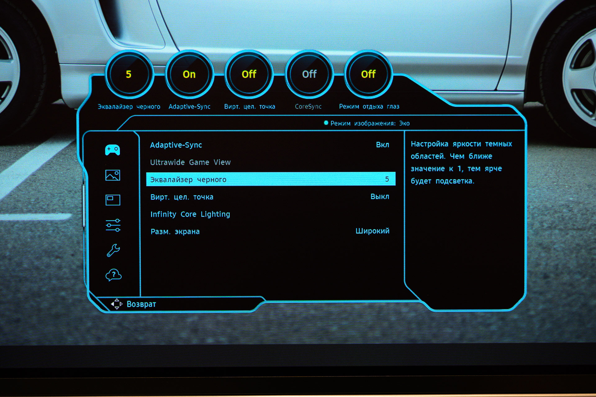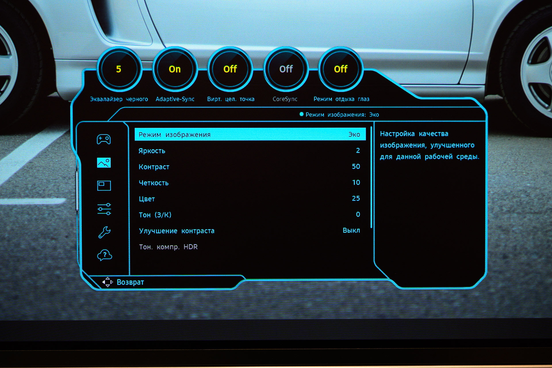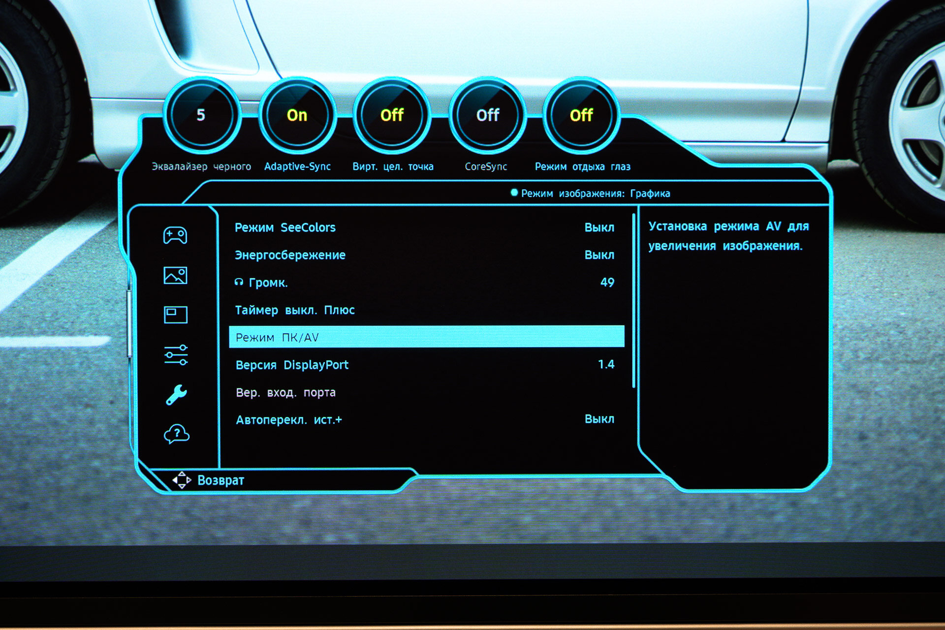Сам по себе монитор здесь флагманский — производителю удалось взять отличную матрицу, использовать её преимущества и нивелировать недостатки. Так, здесь сверхвысокая частота, мгновенный отклик и превосходная насыщенность, а специальные технологии защищают пиксели от выгорания и максимально устраняют возможные блики.