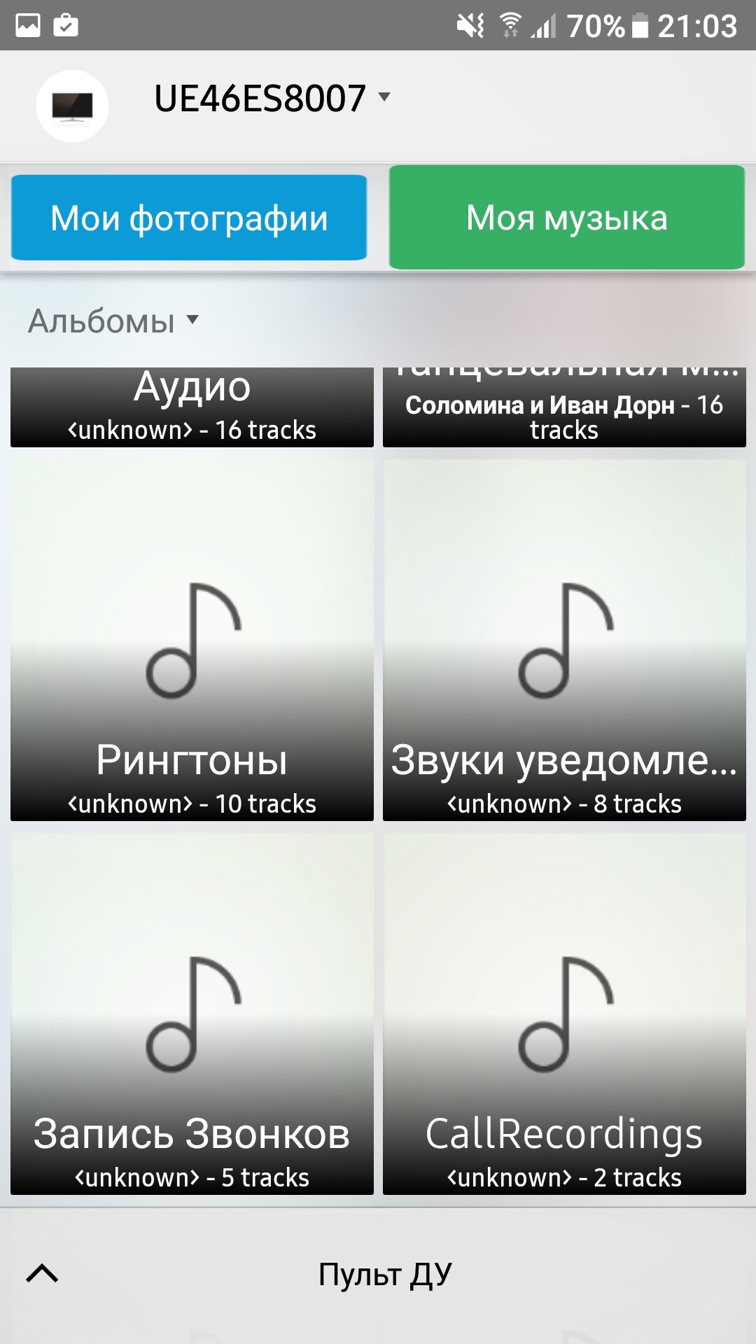 Работает всё. И аудио, и фото, и видео. Плюс пульт ДУ, встроенный в эту прогу.