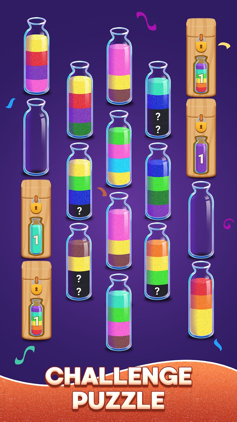 Sand Sorting Challenge приглашает вас освоить искусство складывания разноцветного песка в красивые стеклянные бутылки. С помощью простых нажатий вы можете пересыпать песок из одной емкости в другую, но для этого нужно стратегически мыслить, чтобы не создавать несовместимые цветовые комбинации. Каждый уровень представляет собой новую увлекательную задачу, которая проверяет вашу логику и предвидение, что делает игру идеальным развлечением для игроков всех возрастов, которые любят порядок и яркие цвета.