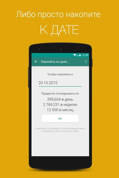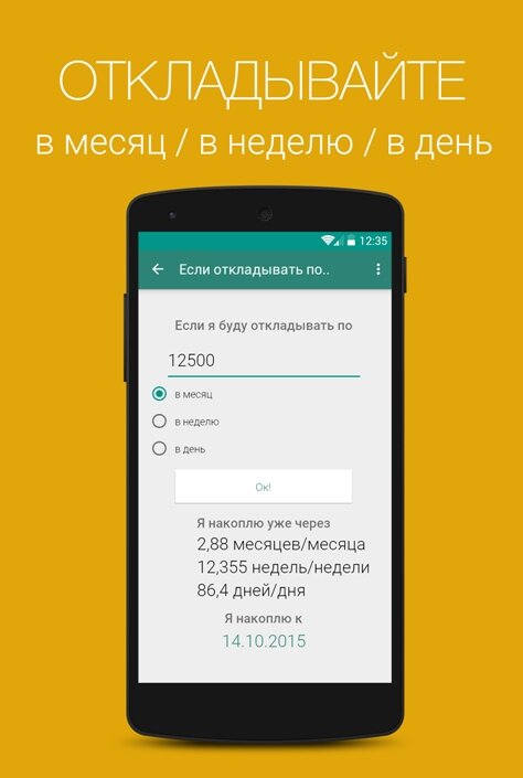 Легко и просто рассчитай как накопить нужную тебе сумму по дням/неделям/месяцам, либо к нужной дате. Удобно и без лишних проблем. С этим приложением можно очень удобно накопить деньги :)