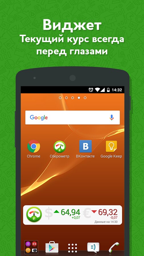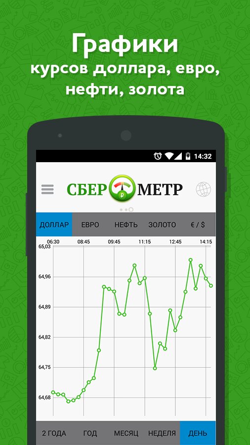 Сберометр — приложение с курсом валют от популярного веб-сайта «Сберометр». Позволяет оперативно получать биржевой курс доллара, евро, цену нефти и золота, а также графики их изменения. Точный официальный курс доллара появляется в приложении за несколько часов до его официального объявления Центральным банком (ЦБ РФ). Содержит новостную дорожку с подборкой свежих валютных новостей. Обновляется каждые 15 минут и отображает самые оперативные биржевые данные, без задержки. Для справки: даже на сайте бирж данные публикуются с задержкой 10-15 мин., что является общемировой практикой. Мы даем курс без задержки. При сильных скачках валюты вы успеете к обменнику до того, как банк поменяет курсы на табло.